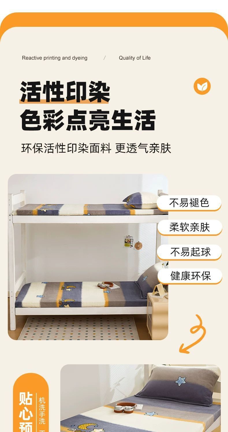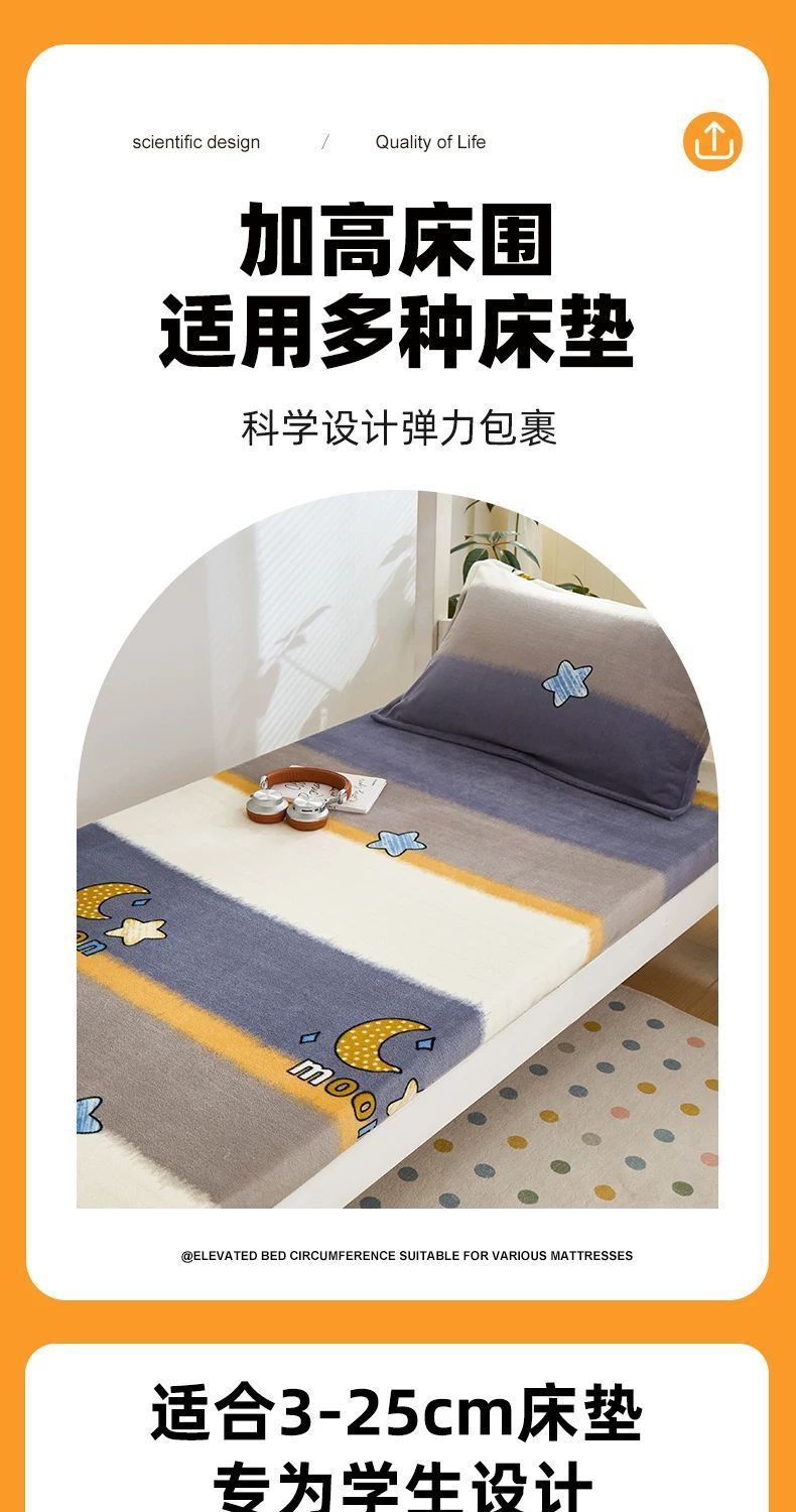 Otoño y invierno leche de terciopelo espeso cama de cama de una sola pieza dormitorio de estudiantes especial para una sola persona con terciopelo de coral colchón cubierta de cama
