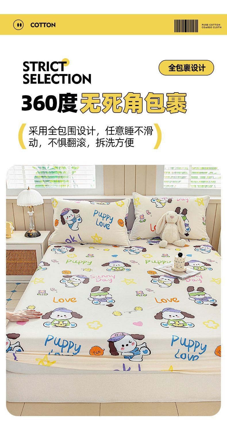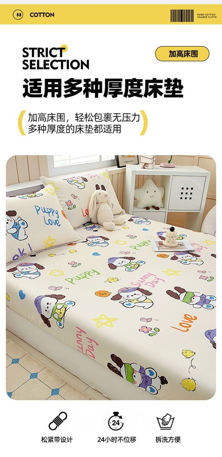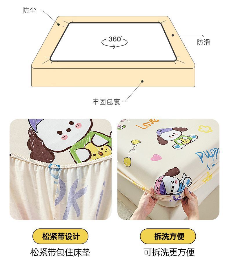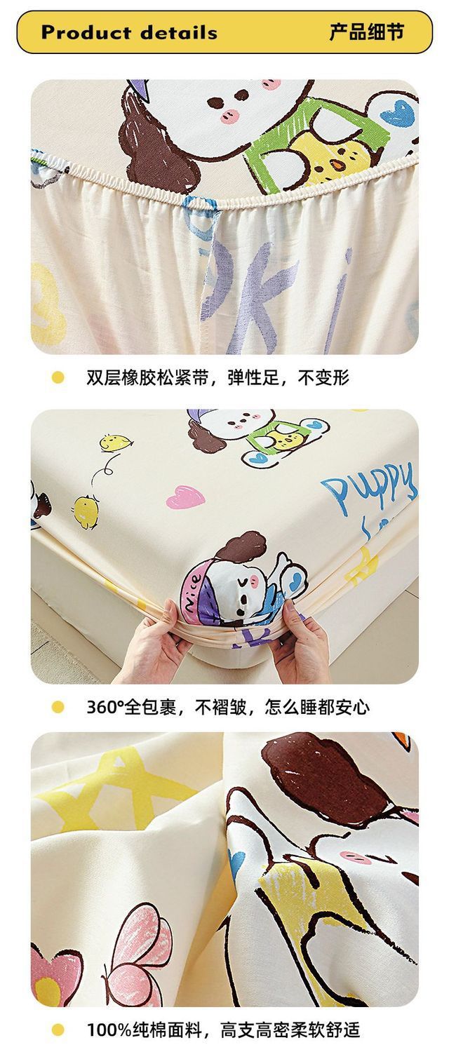 Cama de dibujos animados de algodón, cubierta protectora de colchón de una sola pieza, cubierta de cama de 100% algodón antideslizante, cubierta de polvo, cubierta de cama de dos piezas