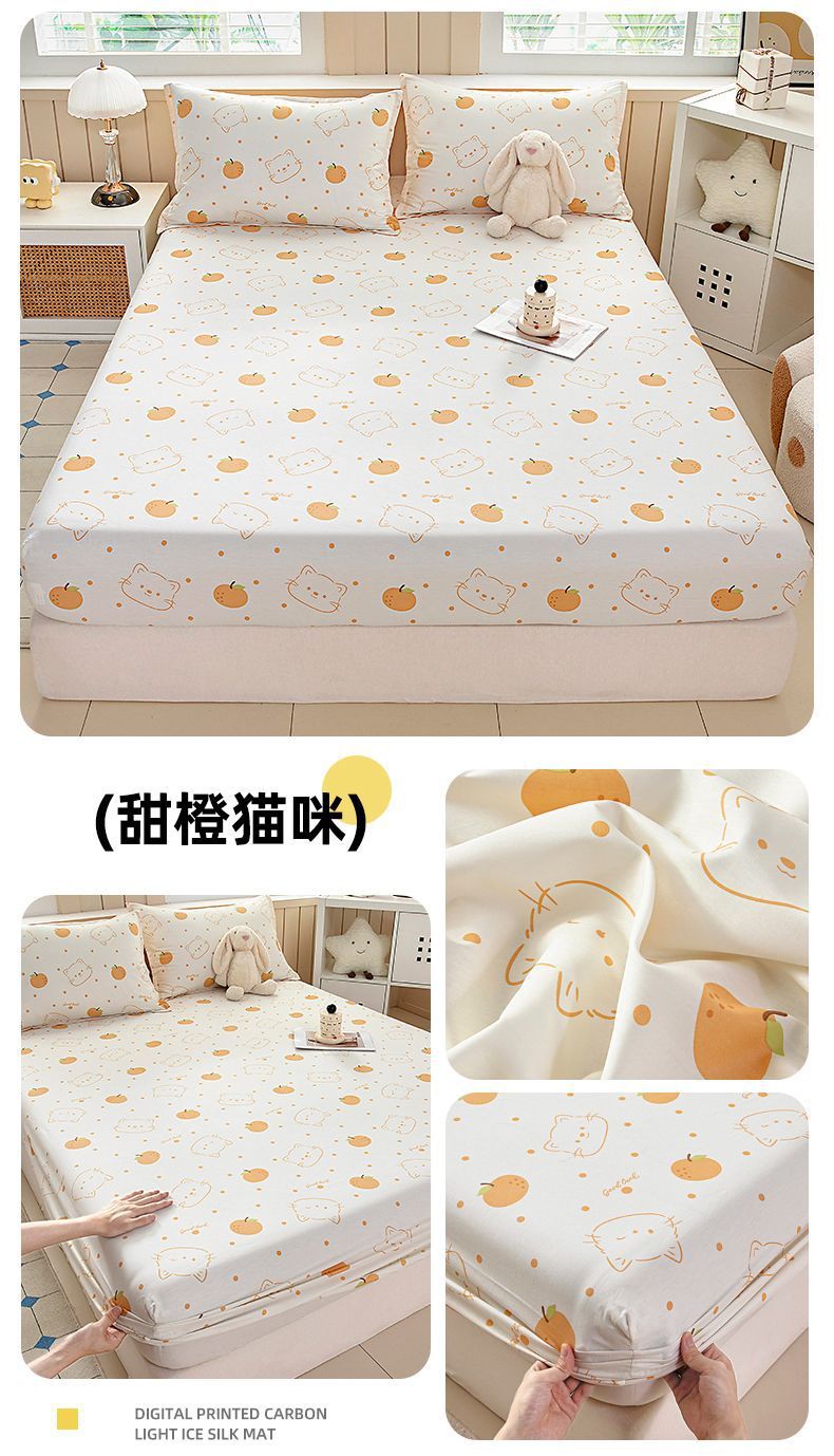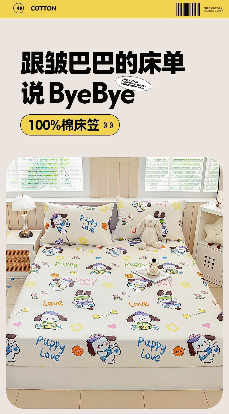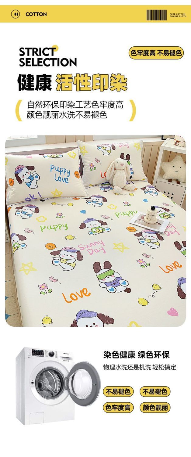 Cama de dibujos animados de algodón, cubierta protectora de colchón de una sola pieza, cubierta de cama de 100% algodón antideslizante, cubierta de polvo, cubierta de cama de dos piezas