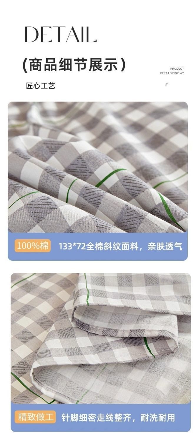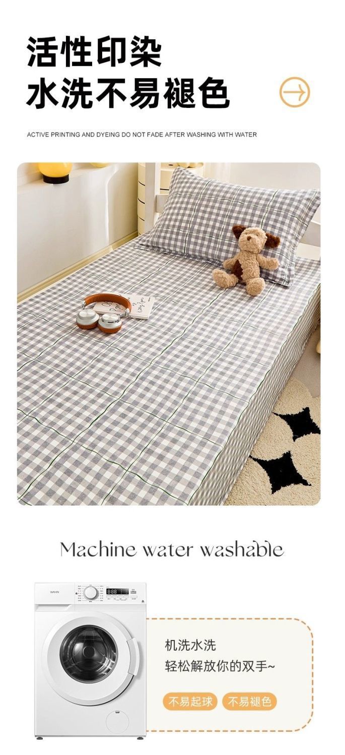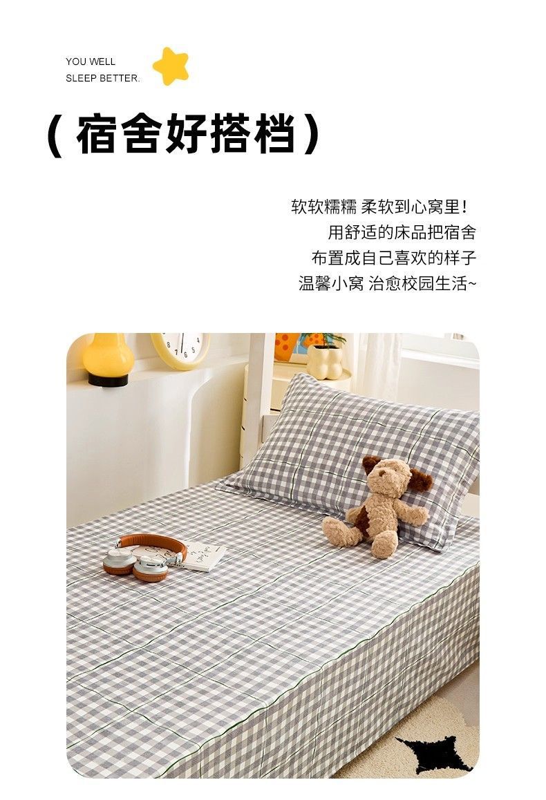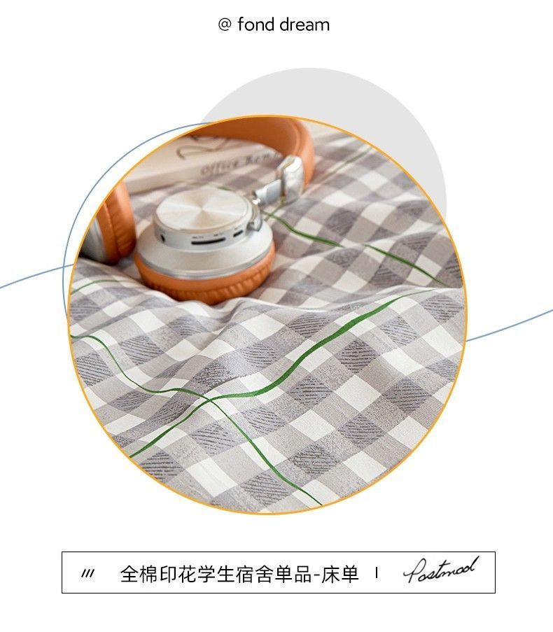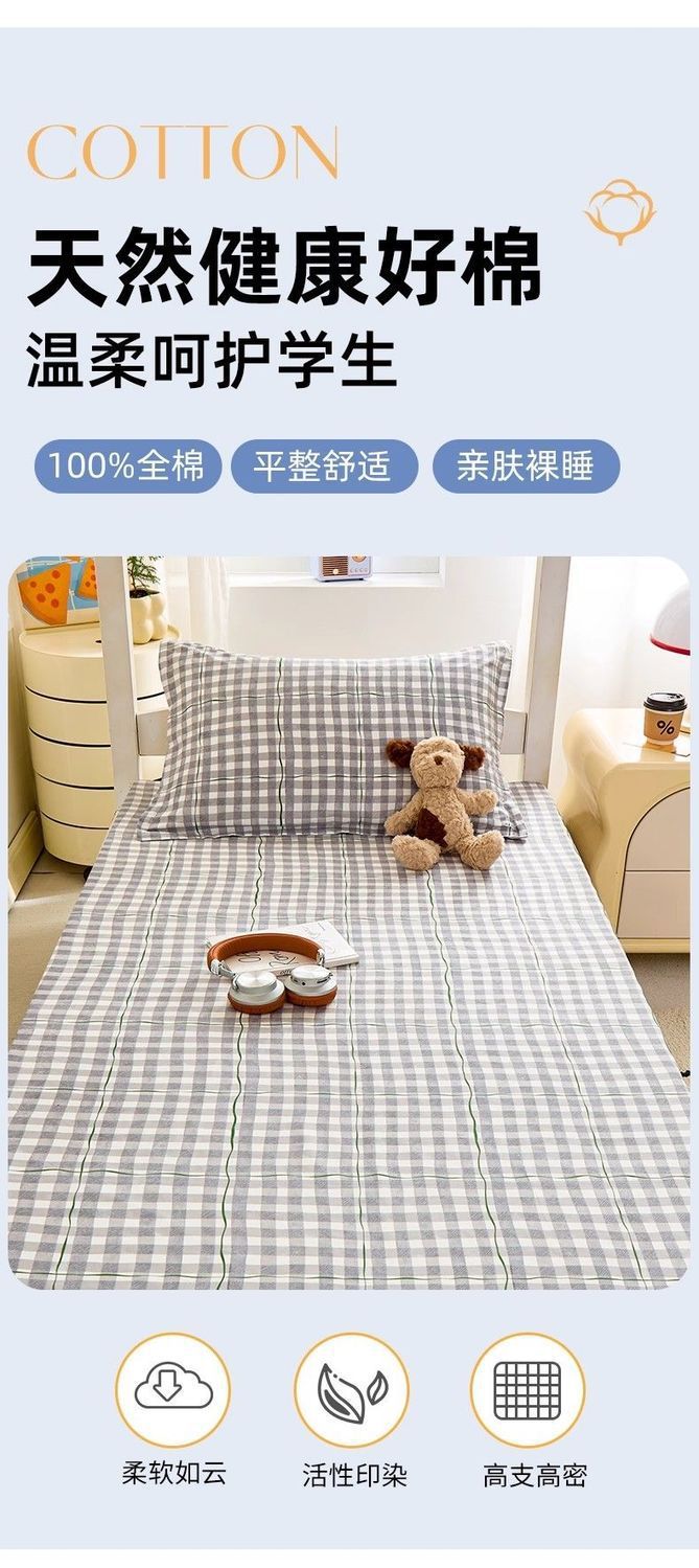 Sábanas de algodón simple a cuadros 100% algodón dormitorio colchón dormitorio de un solo estudiante cama individual de tres piezas set 0.9m