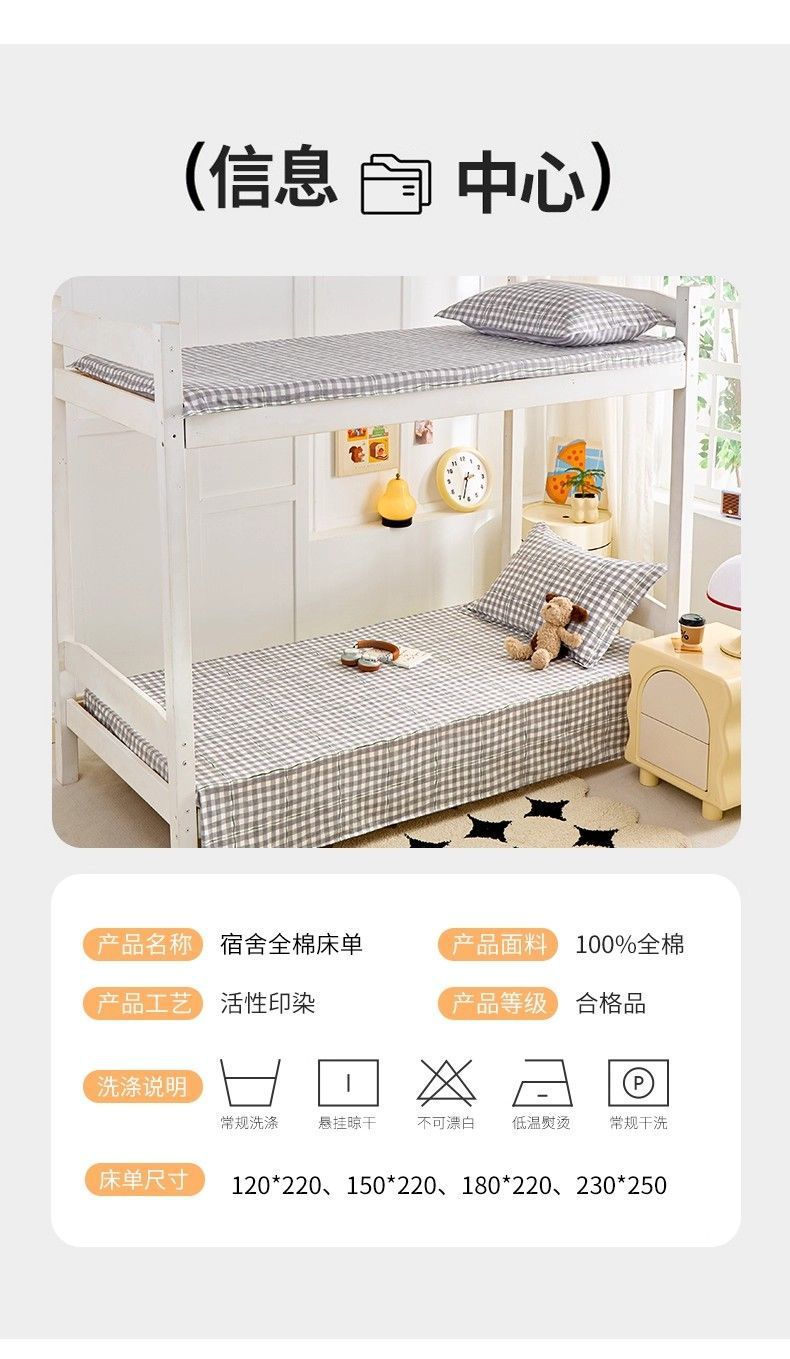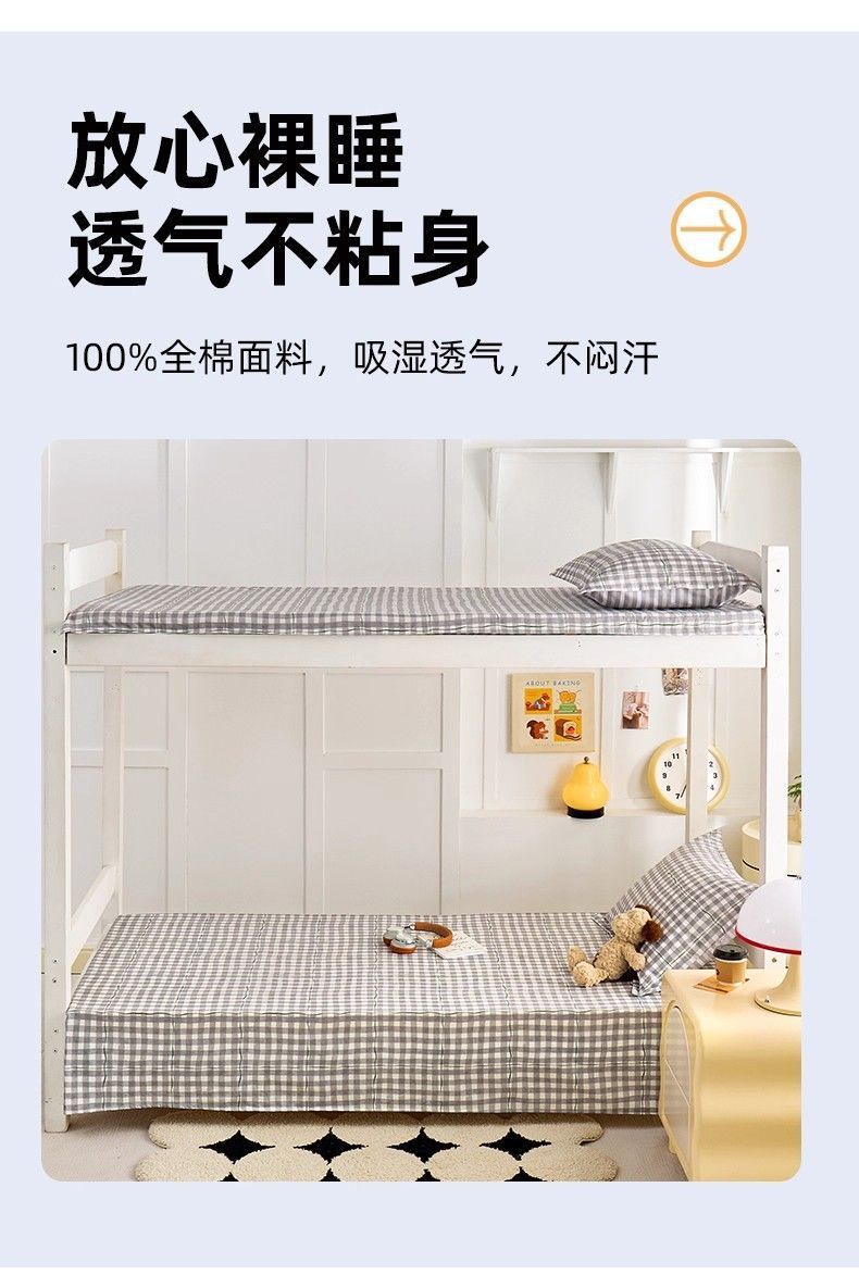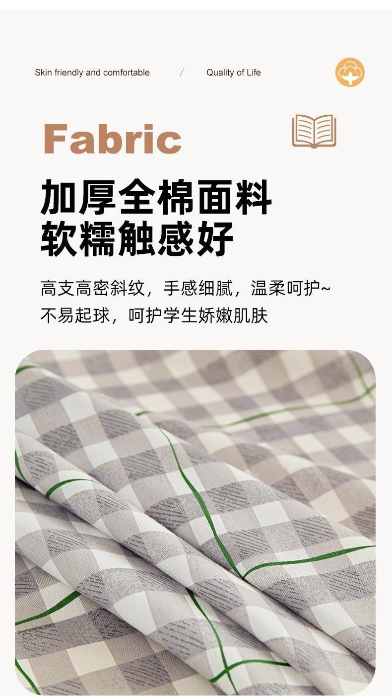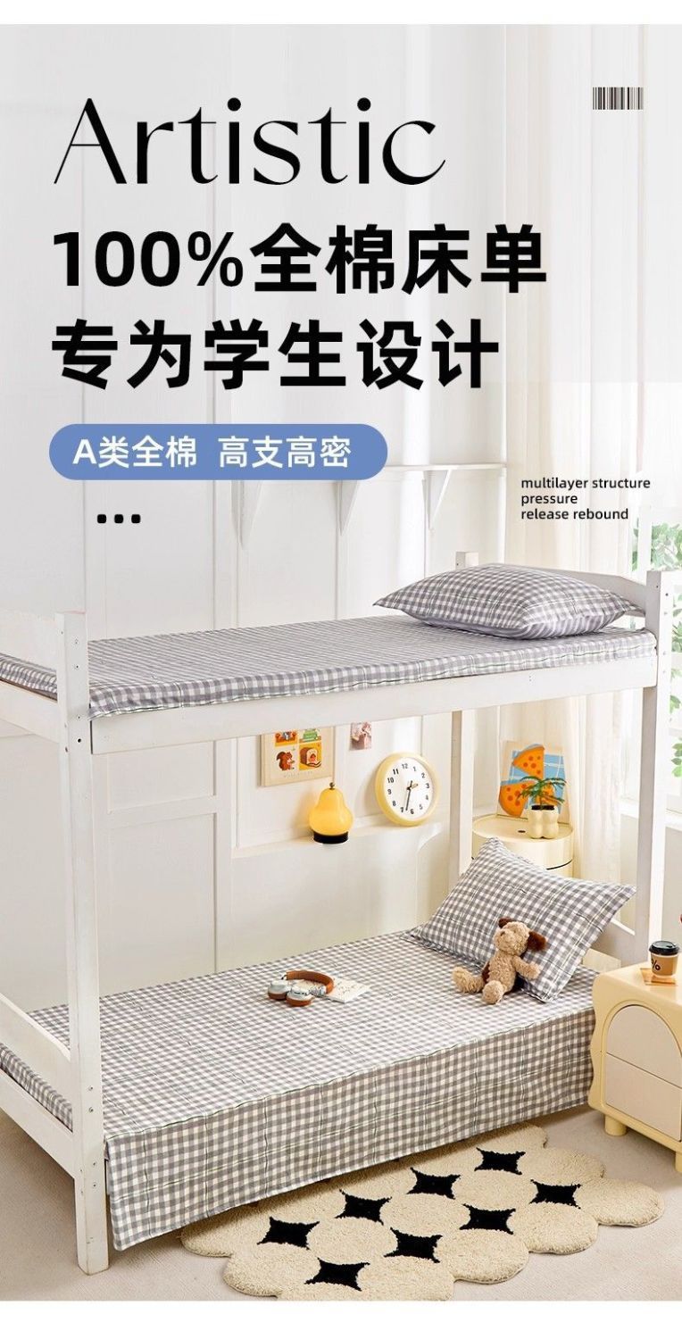 Sábanas de algodón simple a cuadros 100% algodón dormitorio colchón dormitorio de un solo estudiante cama individual de tres piezas set 0.9m