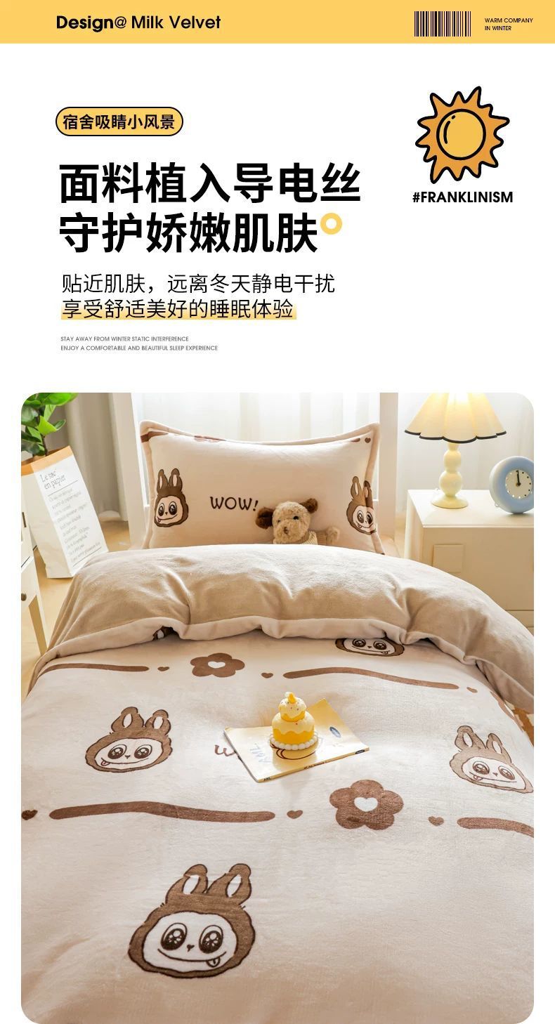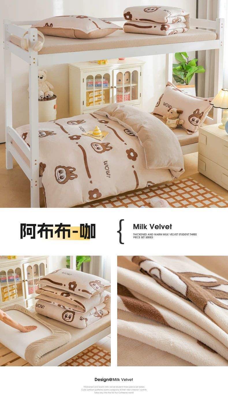 Tres piezas de cama de terciopelo de leche dormitorio estudiantil invierno sábanas de terciopelo de coral cubierta cama de terciopelo de coral cama de cama de cama de terciopelo