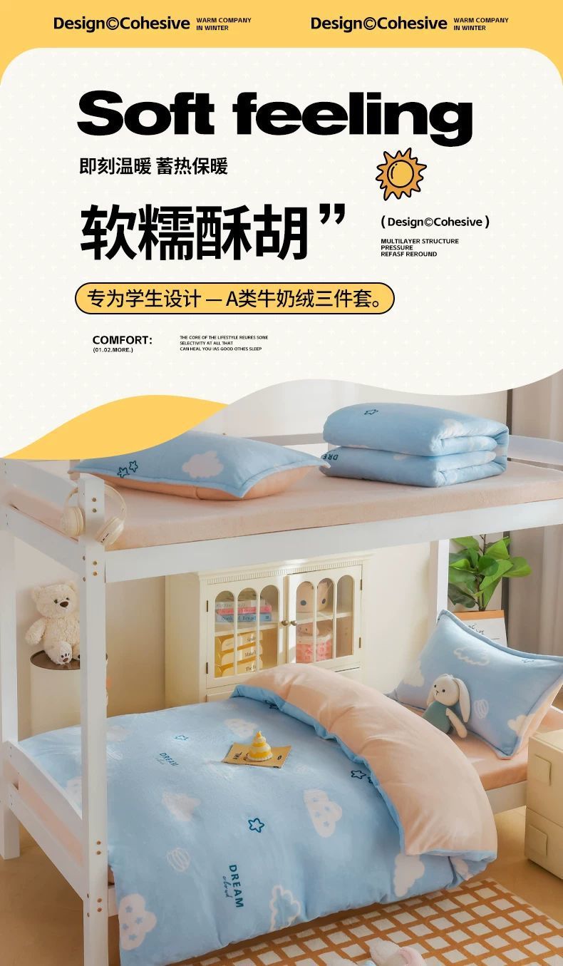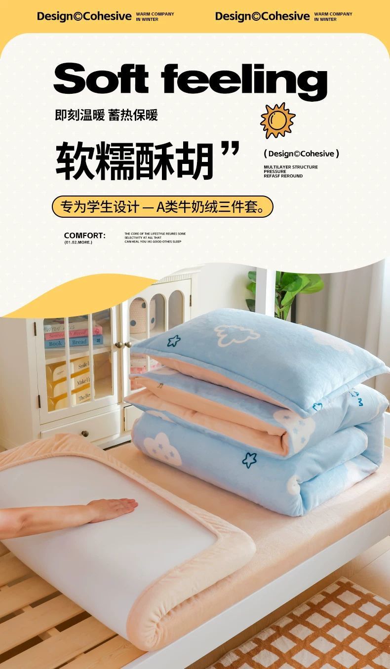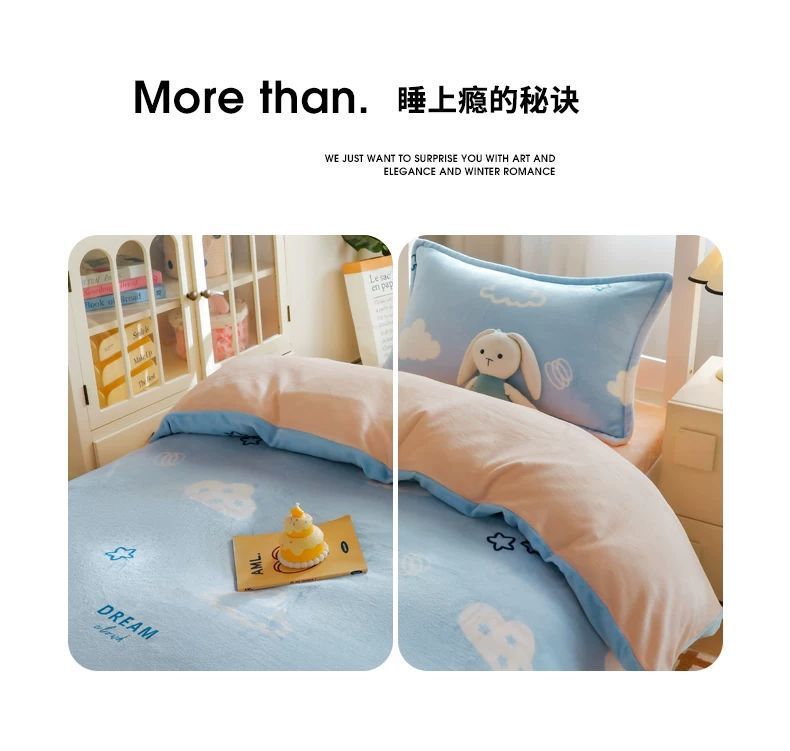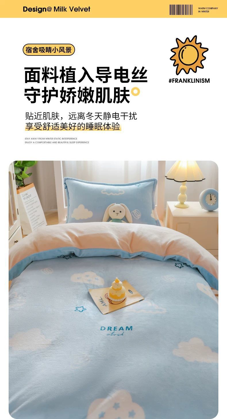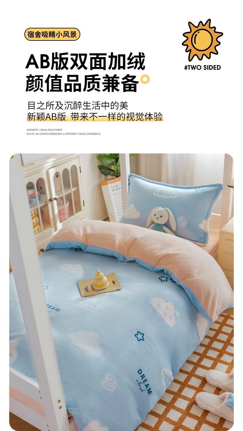 Dormitorio de estudiantes de invierno de cama de terciopelo de leche de tres piezas cubierta de sábanas de terciopelo de coral de brida Kasa 4