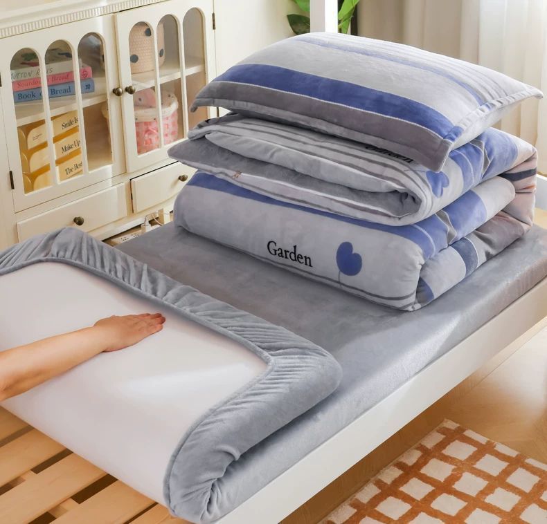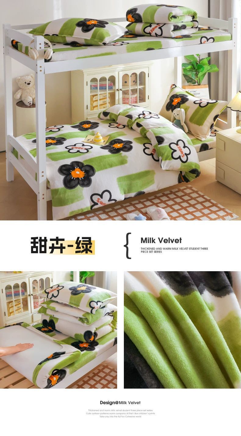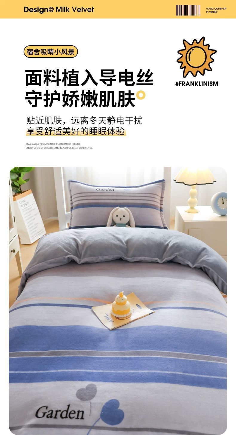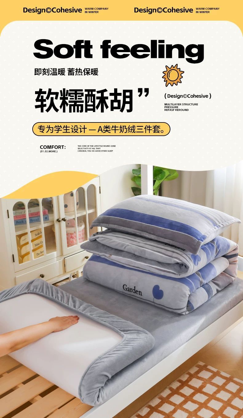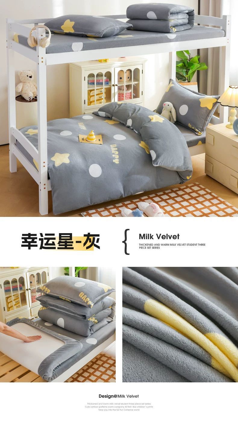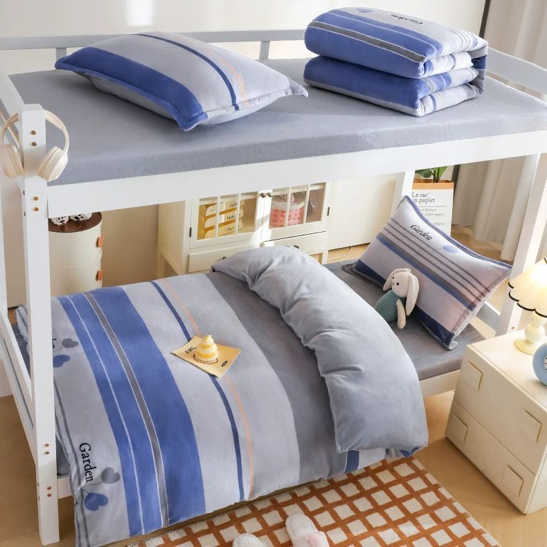 Dormitorio universitario masculino de invierno de seda de seda de seda de seda de coral de brida de seda de seda de tres piezas
