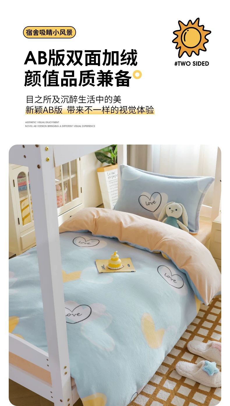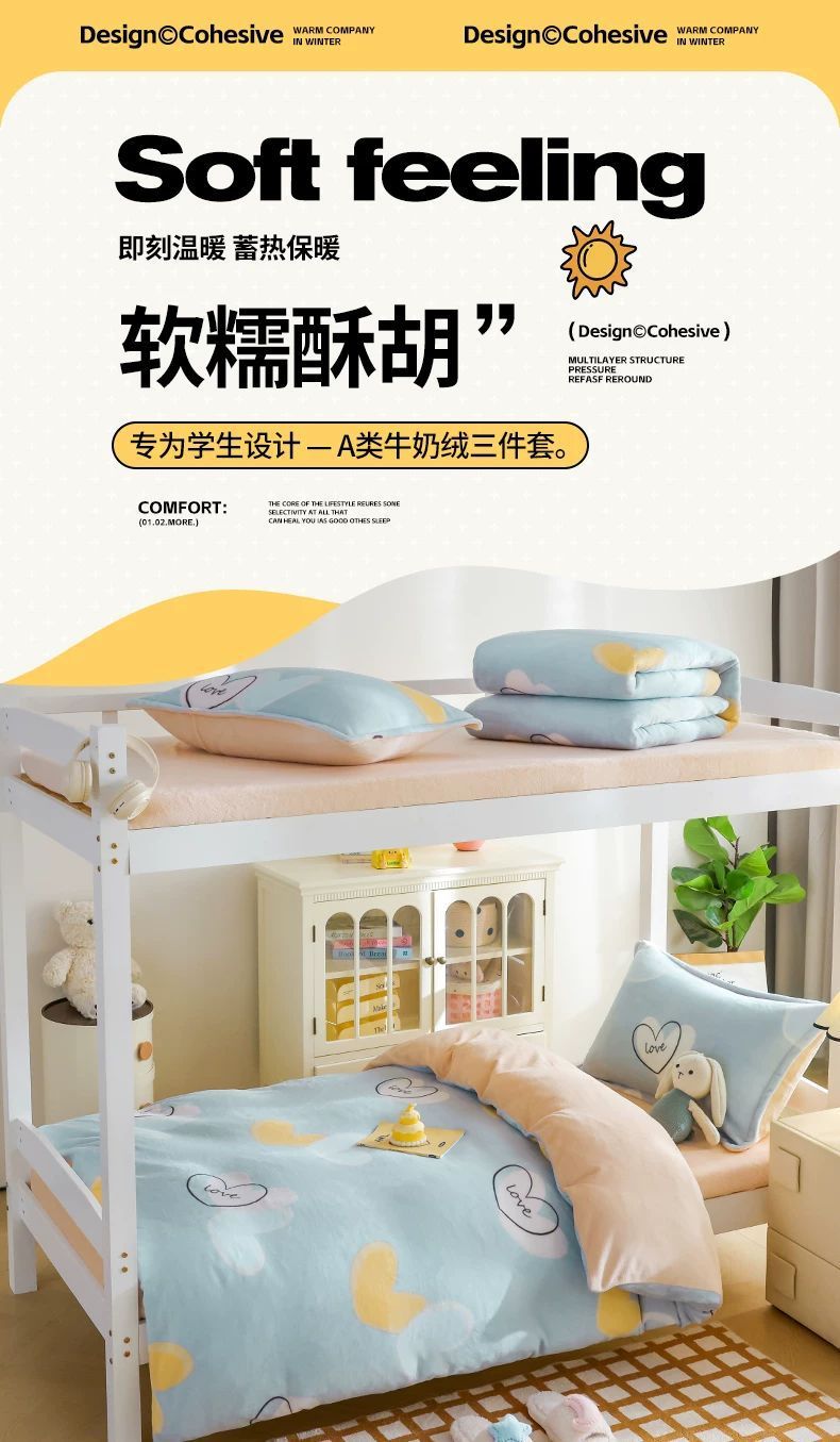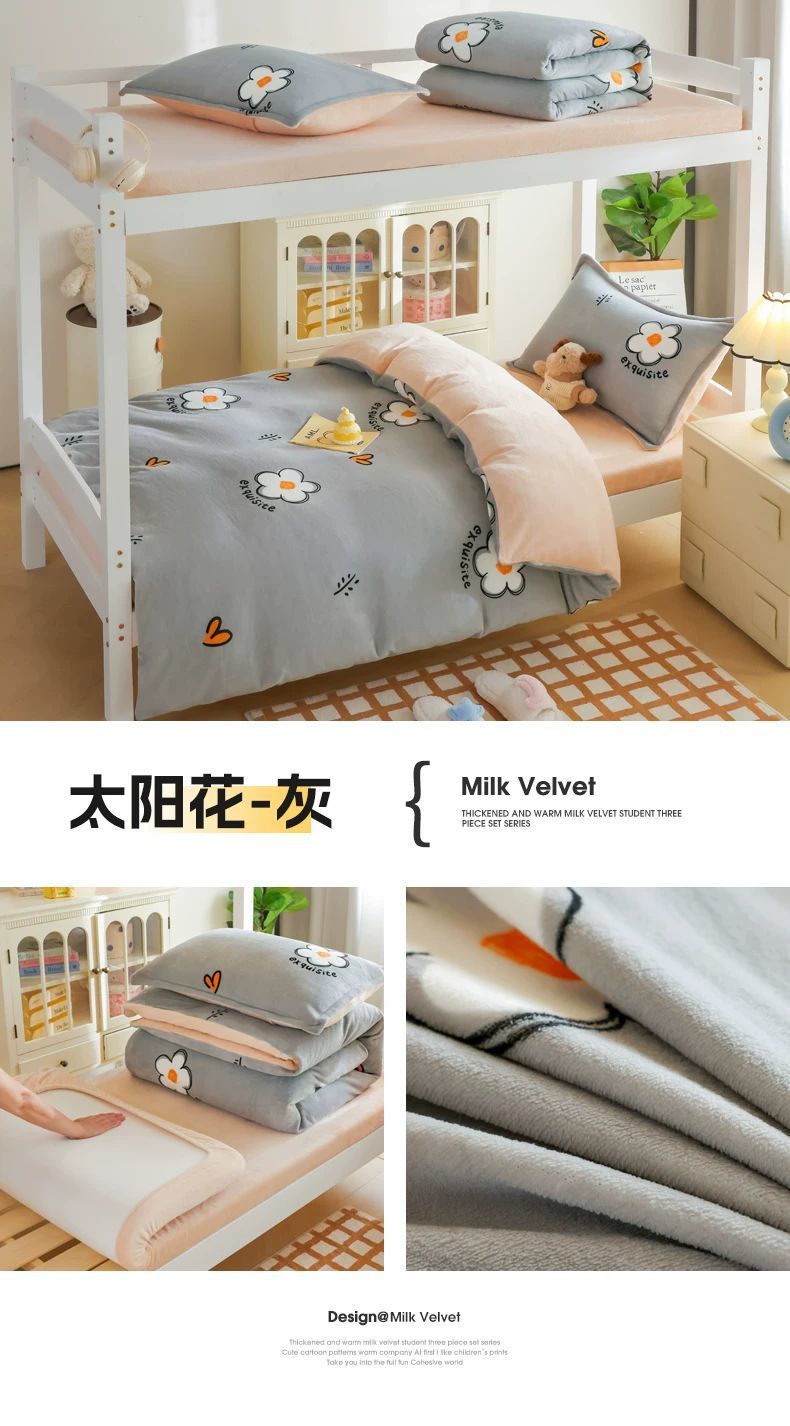 Dormitorio de estudiantes de invierno de cama de terciopelo de leche de tres piezas cubierta de sábanas de terciopelo de coral de brida Kasa 4
