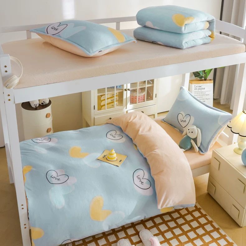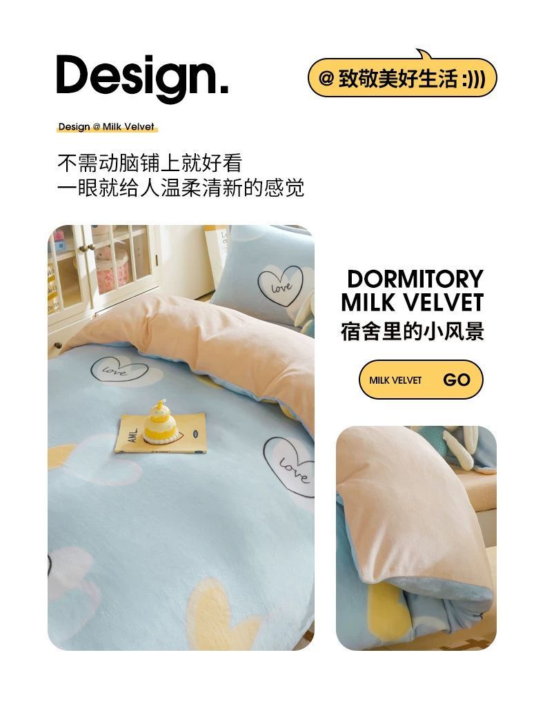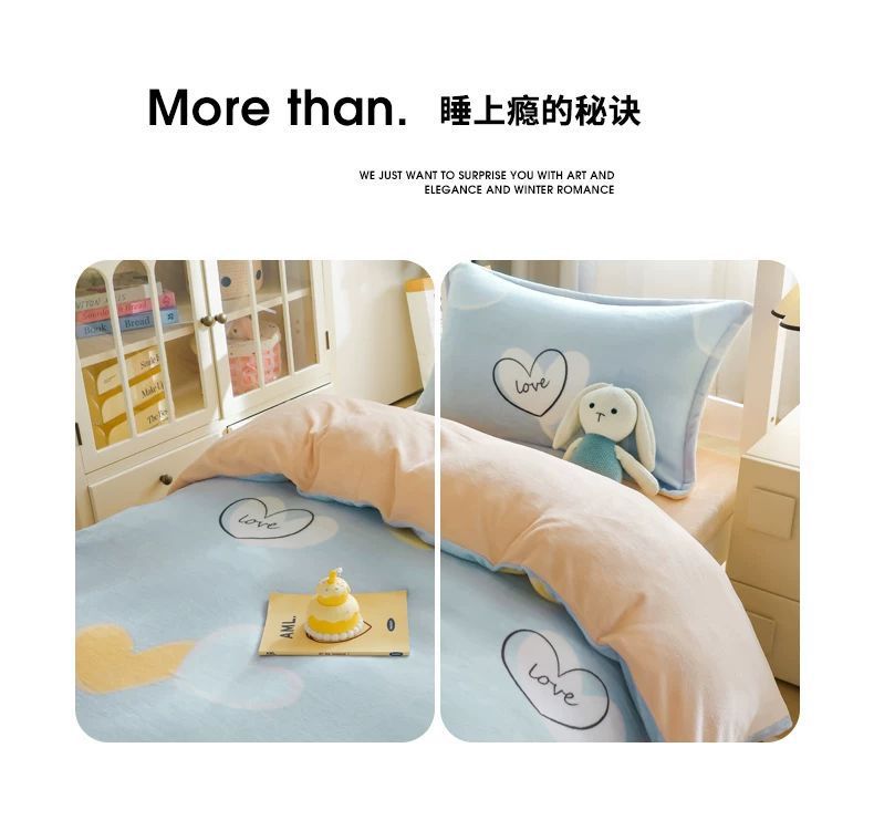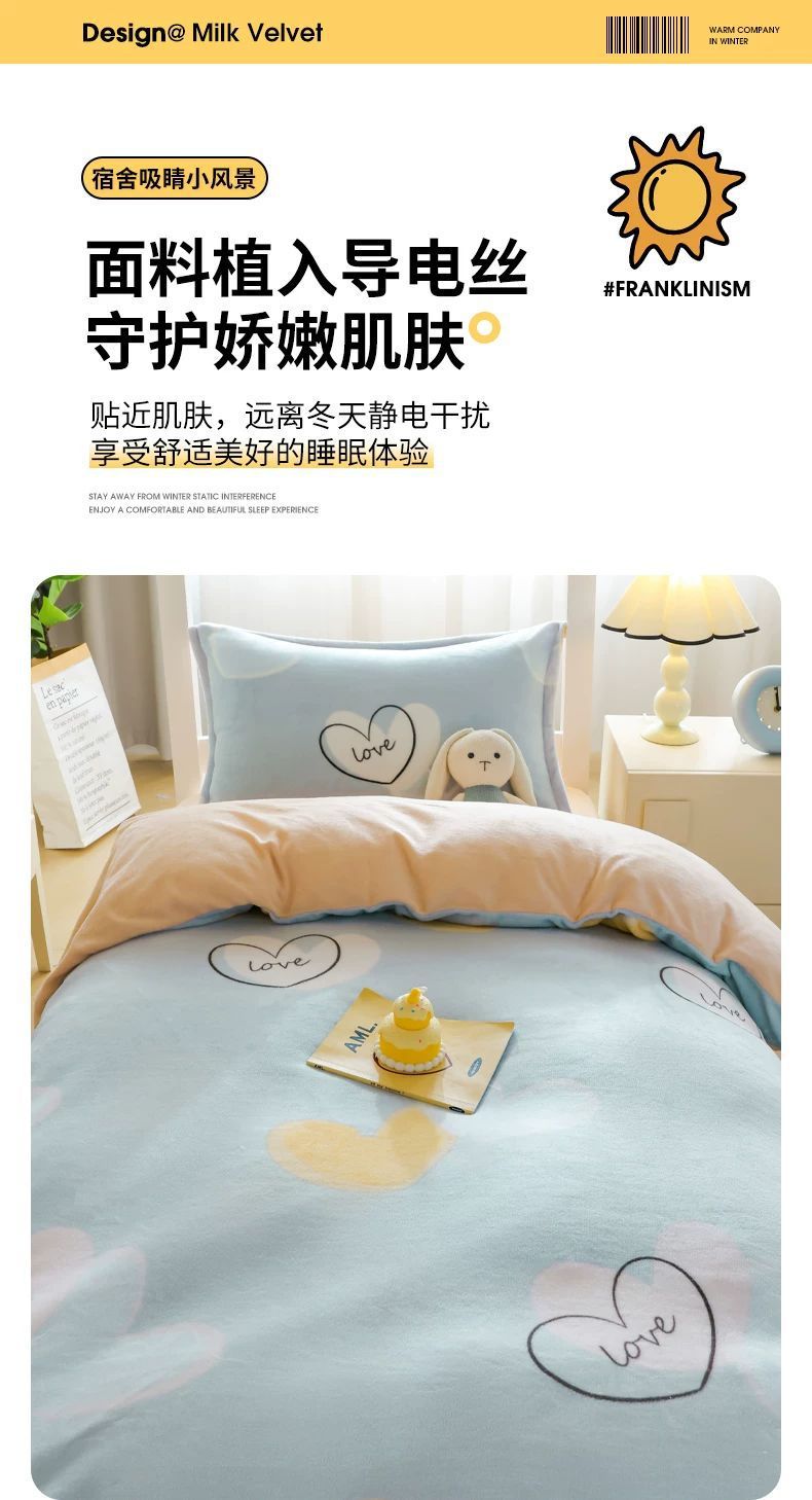 Dormitorio de estudiantes de invierno de cama de terciopelo de leche de tres piezas cubierta de sábanas de terciopelo de coral de brida Kasa 4