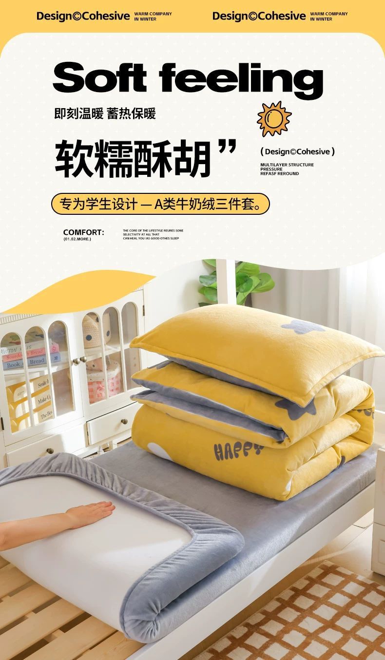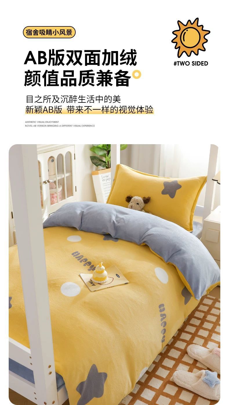 2025 nueva cama de terciopelo de leche de tres piezas dormitorio universitario invierno sábanas de terciopelo de coral cubierta de terciopelo