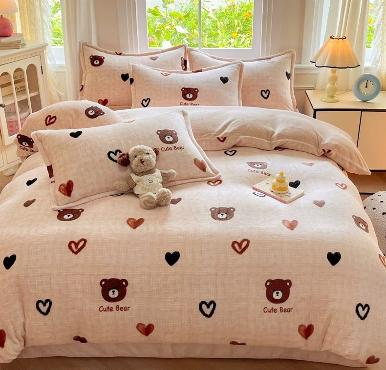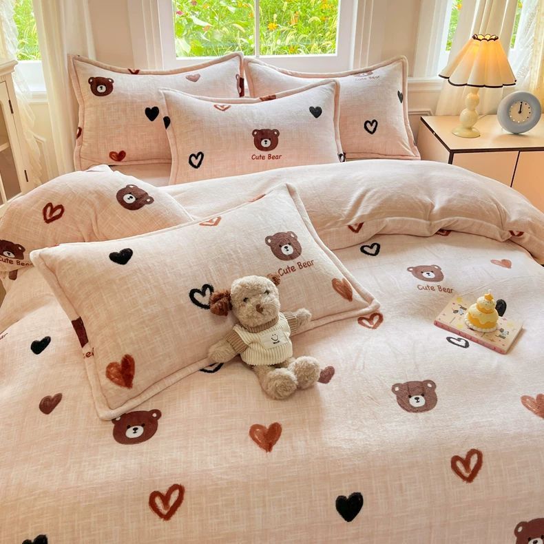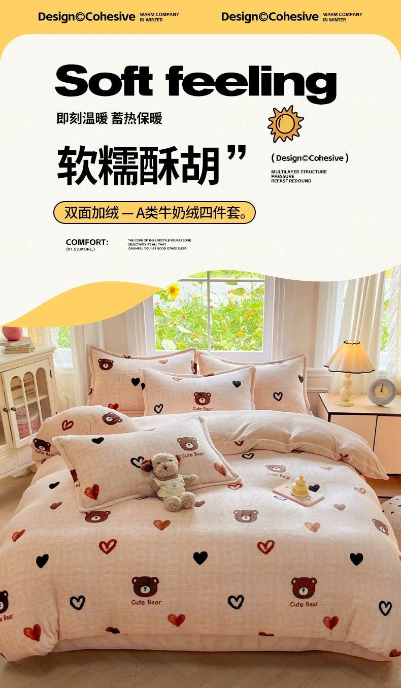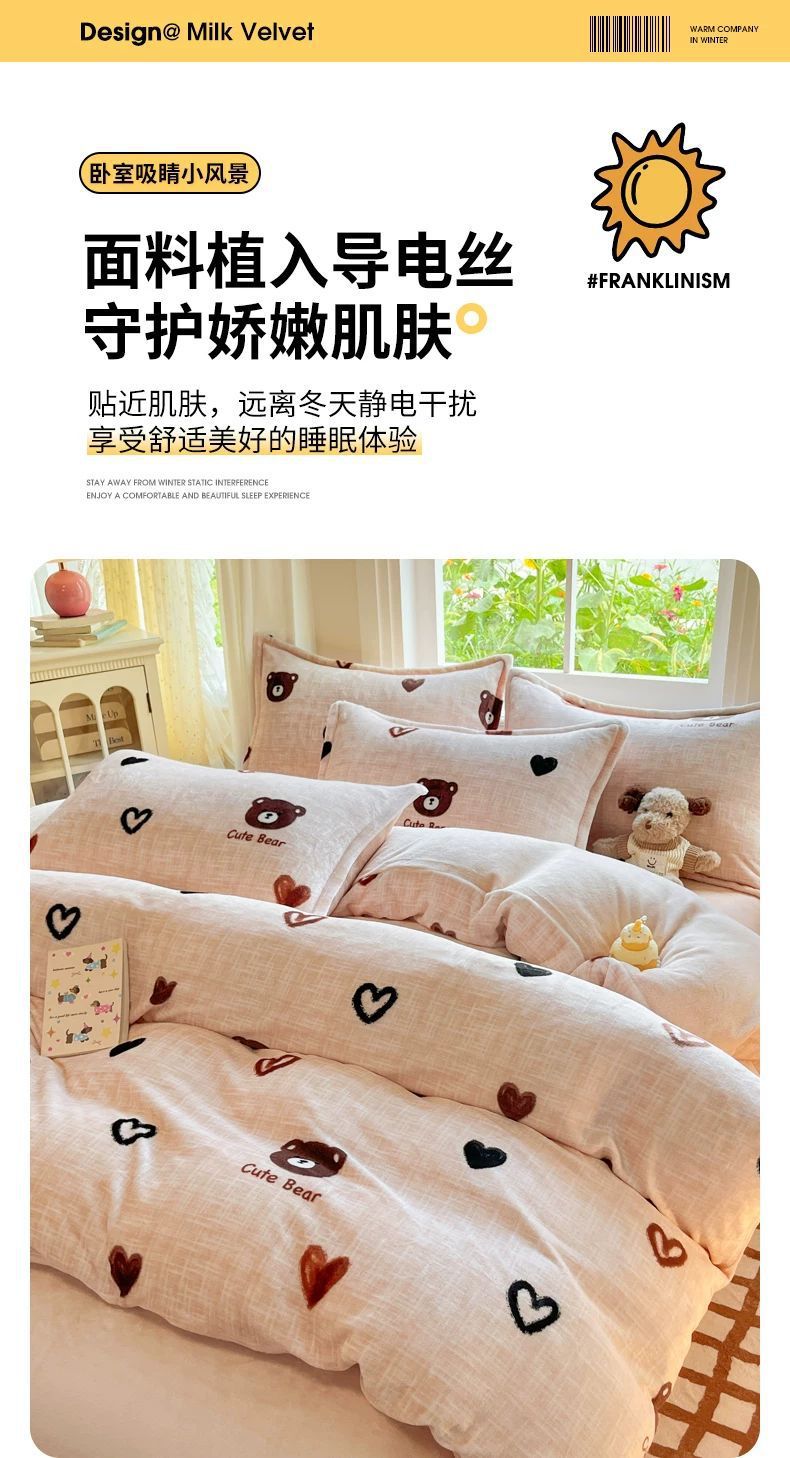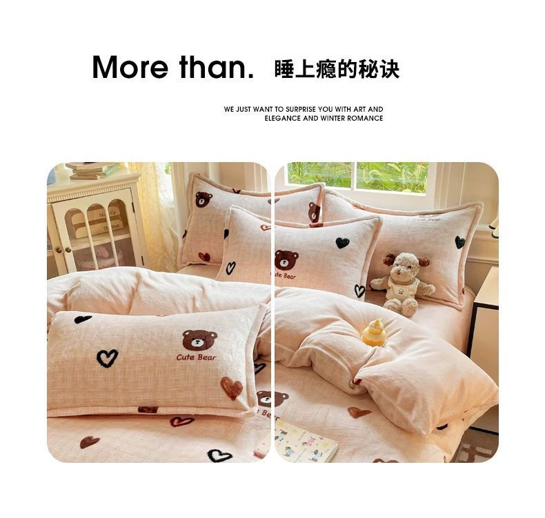 Invierno leche de cama de terciopelo de cuatro piezas con doble terciopelo de brida gruesa sábanas de terciopelo de coral cubierta dormitorio conjunto de tres piezas