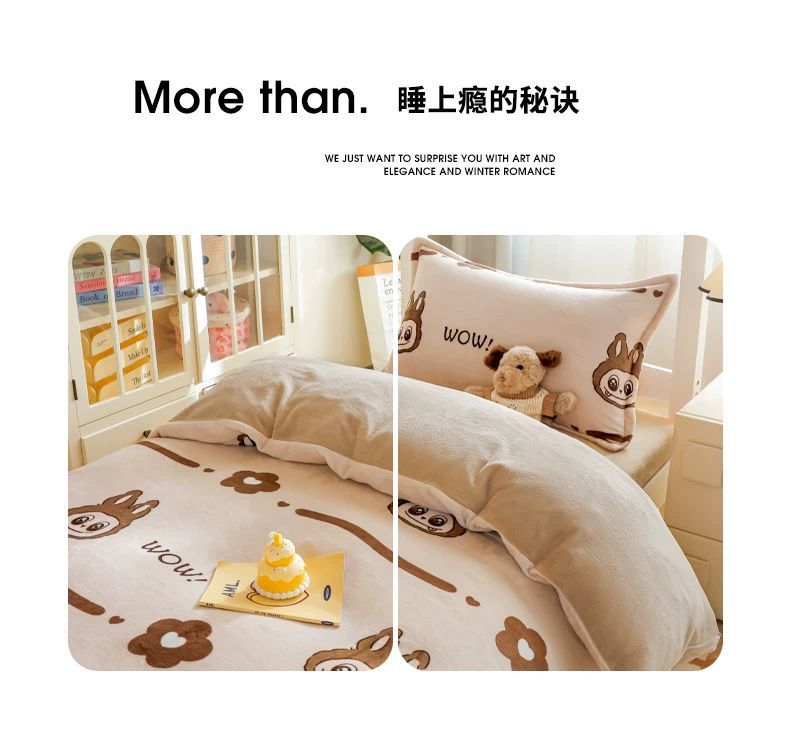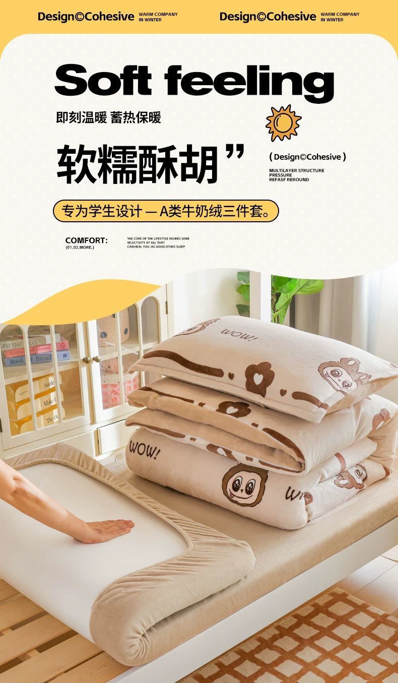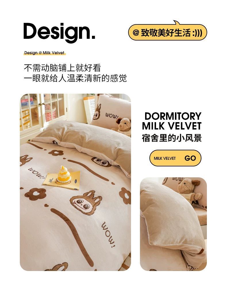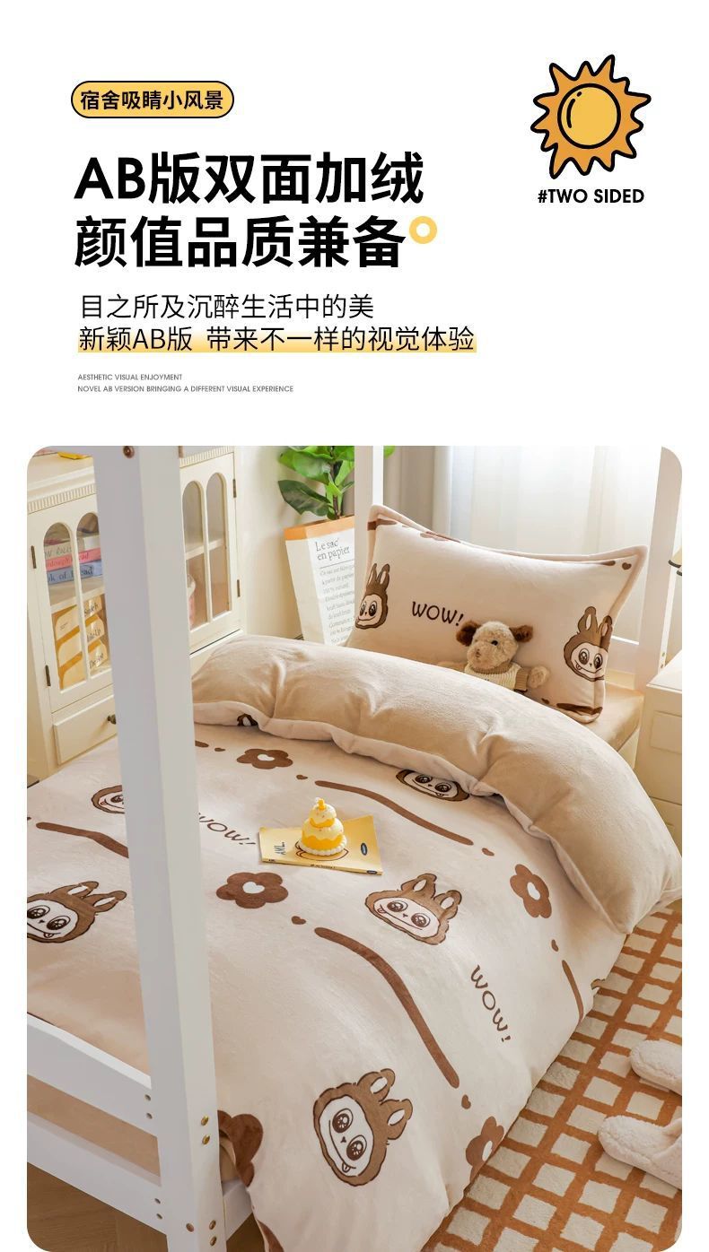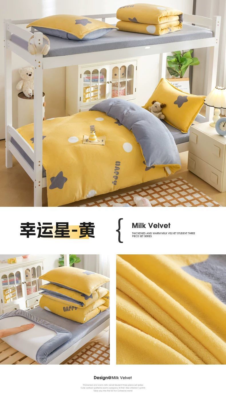 Leche cama de terciopelo de tres piezas dormitorio universitario cama de invierno sábanas de terciopelo de coral flange cuatro