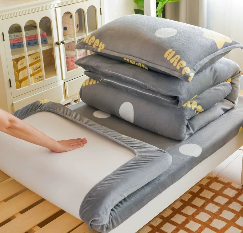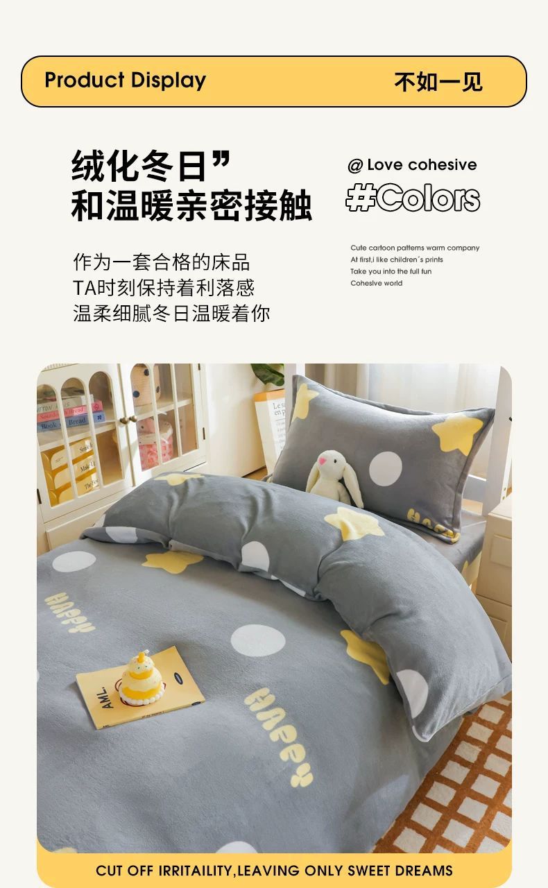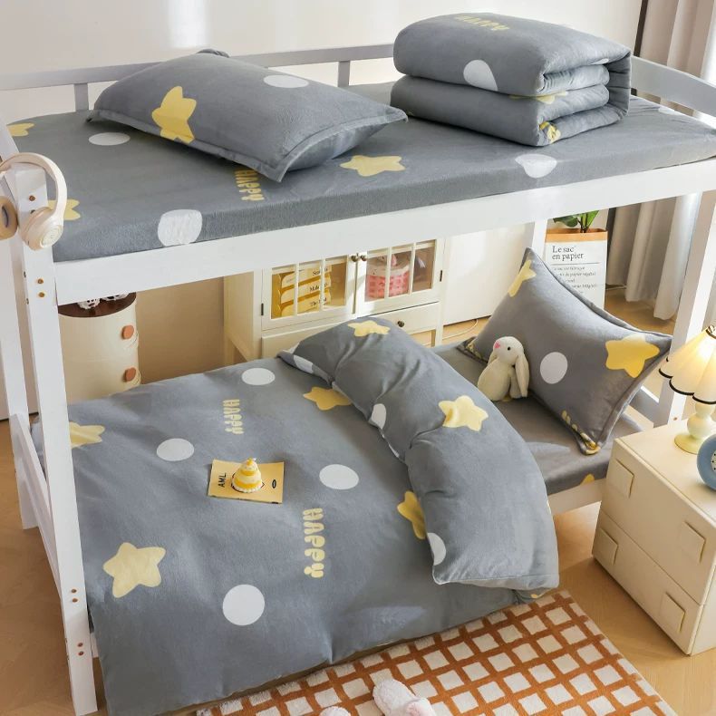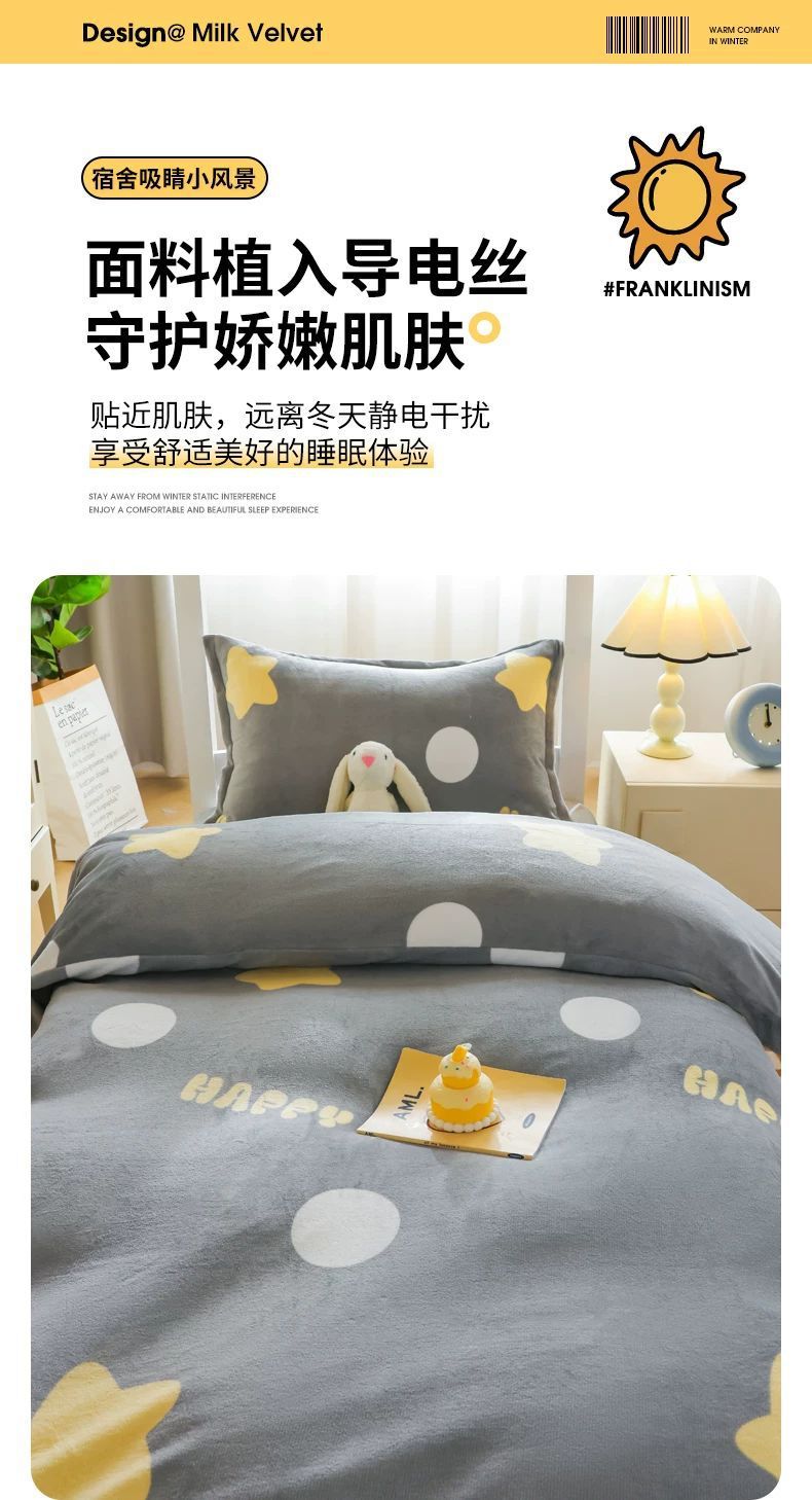 Leche cama de terciopelo de tres piezas dormitorio de estudiantes cama de invierno sábanas de terciopelo de coral cubierta de terciopelo de cuatro niños