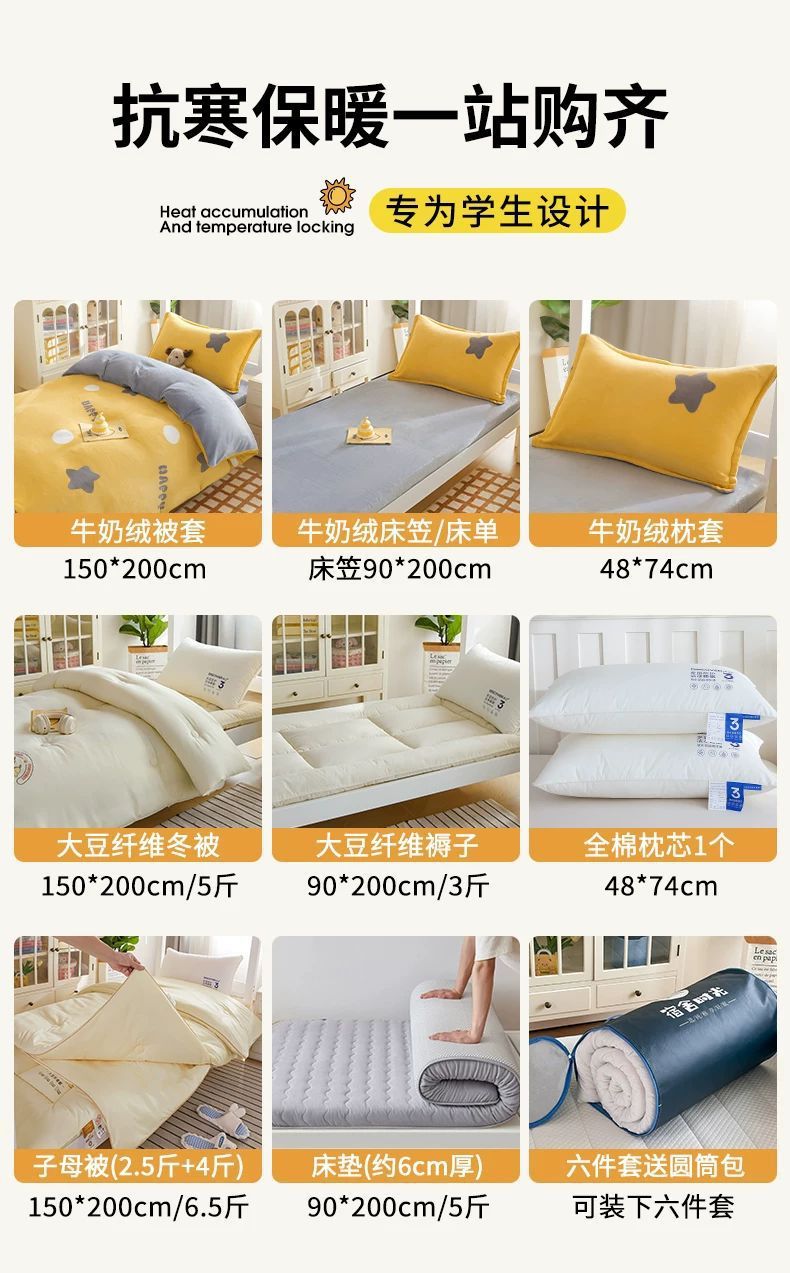 Set de 6 piezas: set de tres piezas + almohada + 5 kg de colchón de soja + colchón