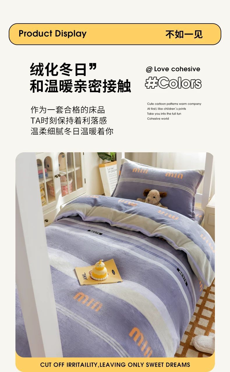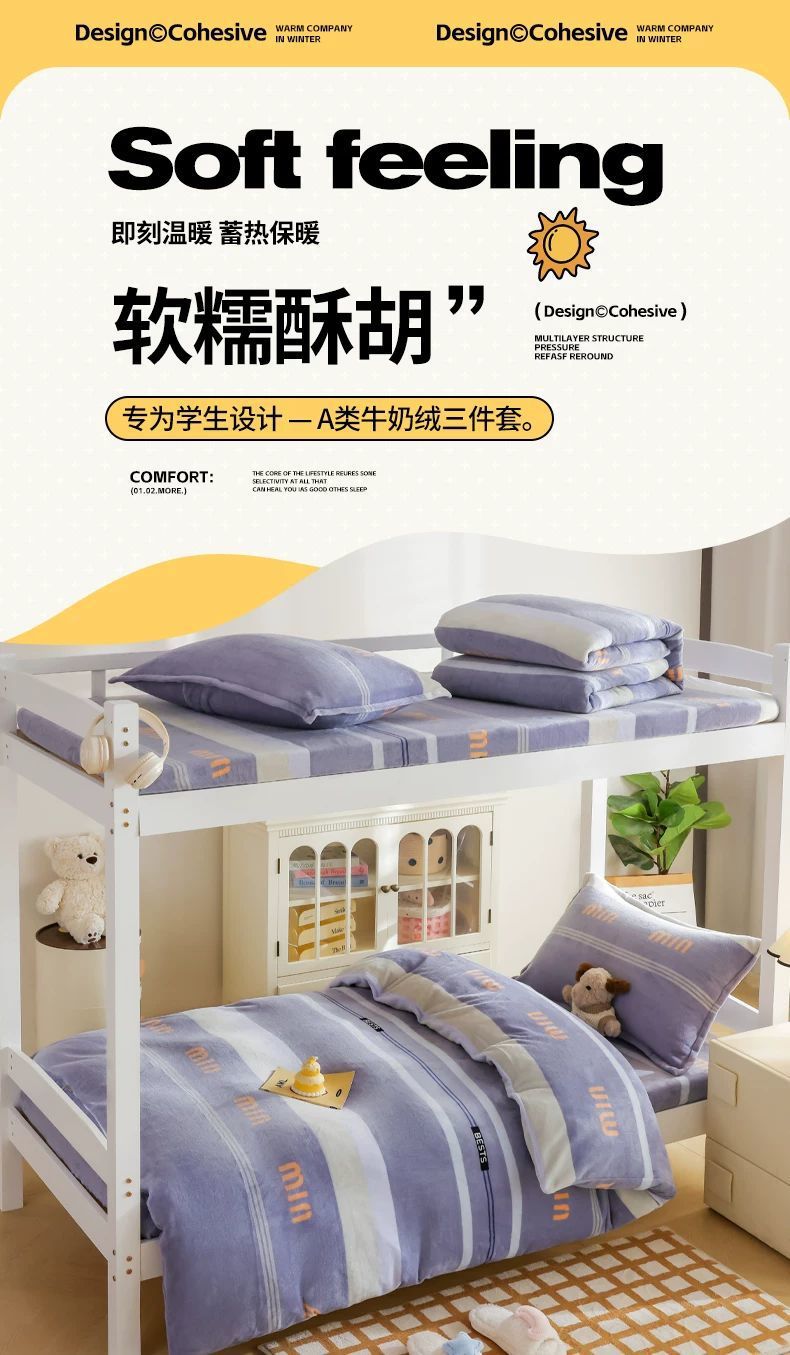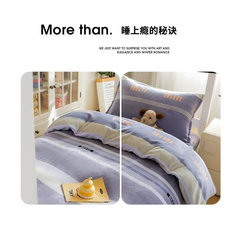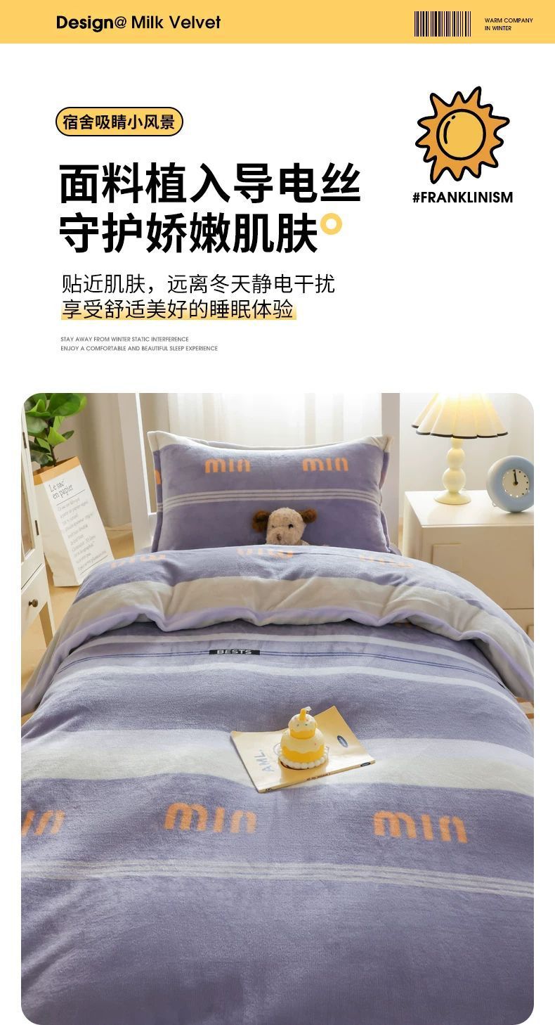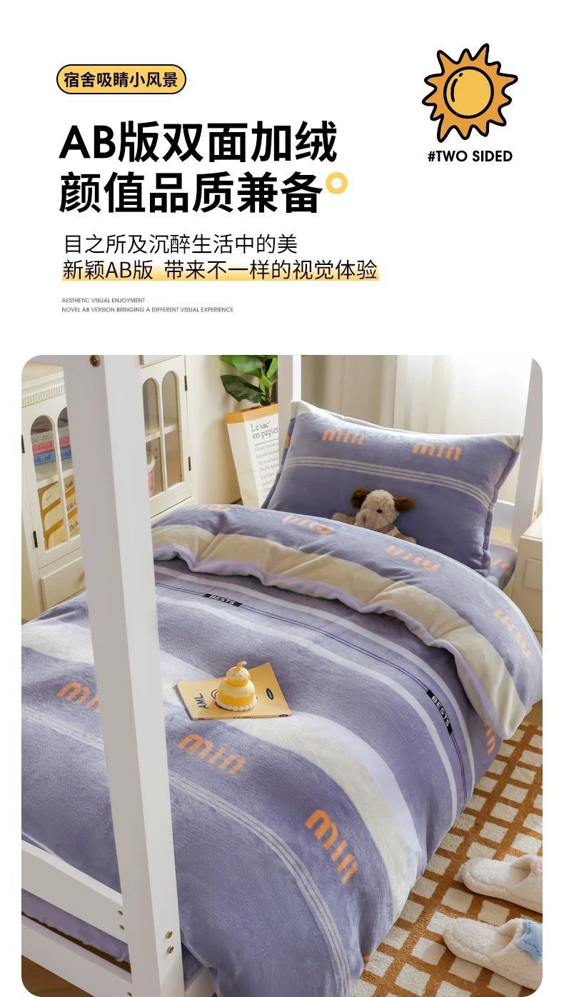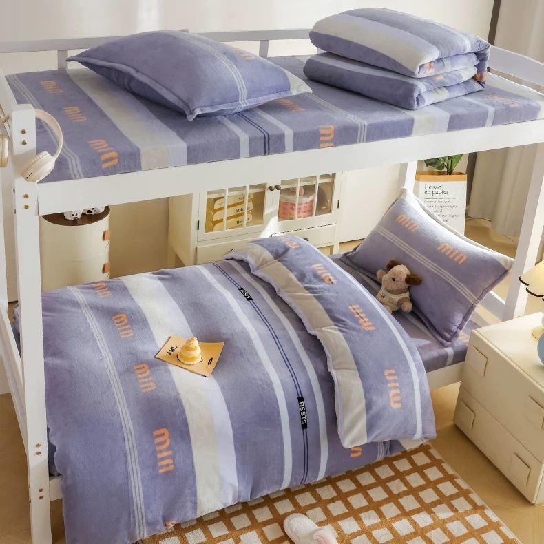 Dormitorio universitario de invierno de cama de lana de leche de tres piezas cubierta de sábanas gruesas de lana de coral de brida para niños