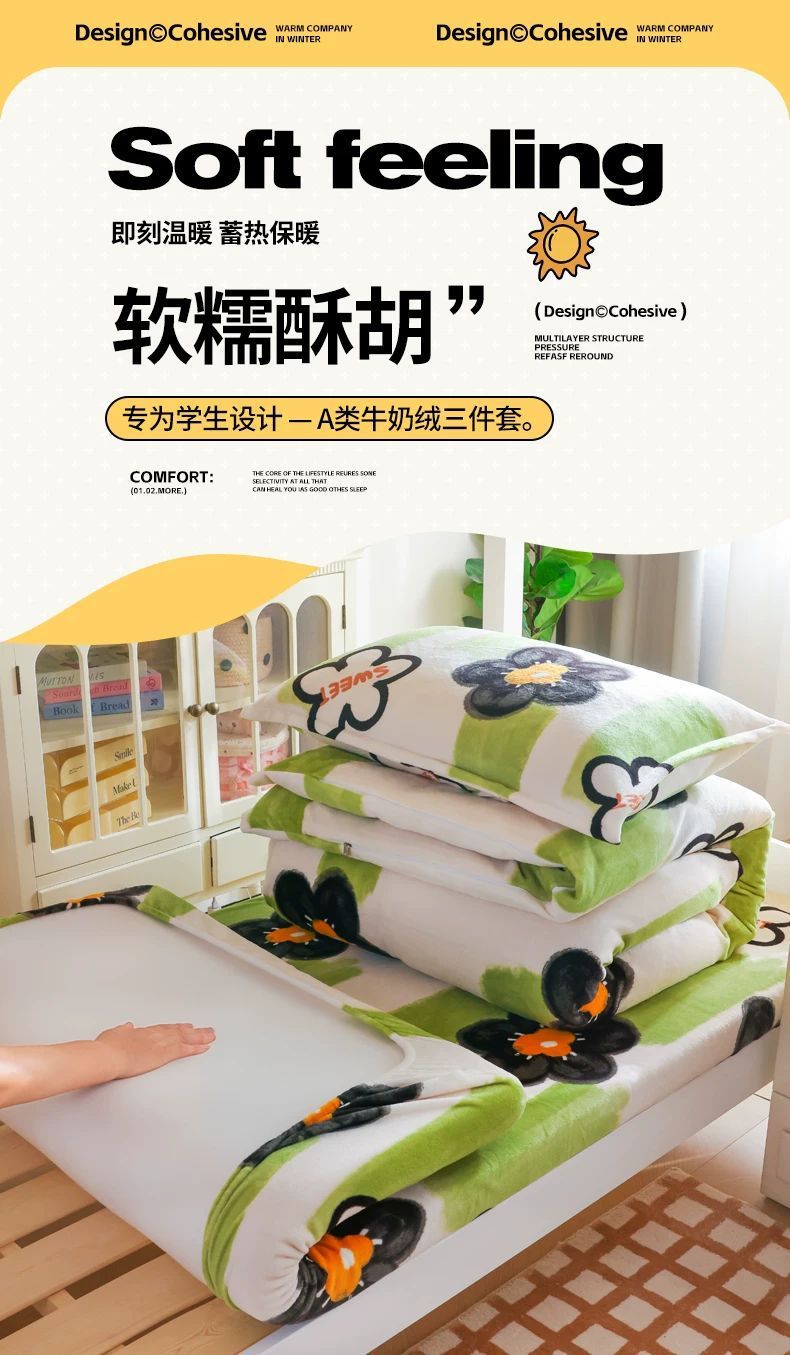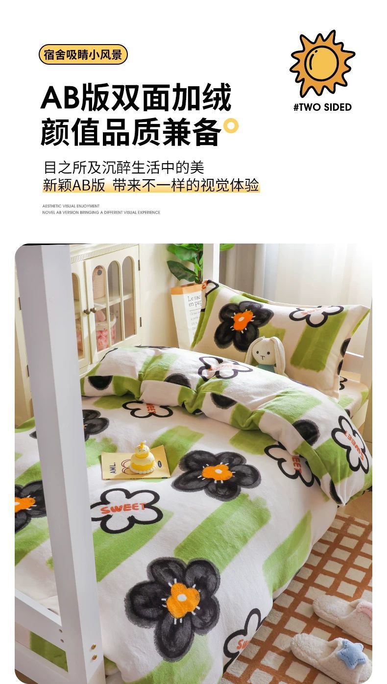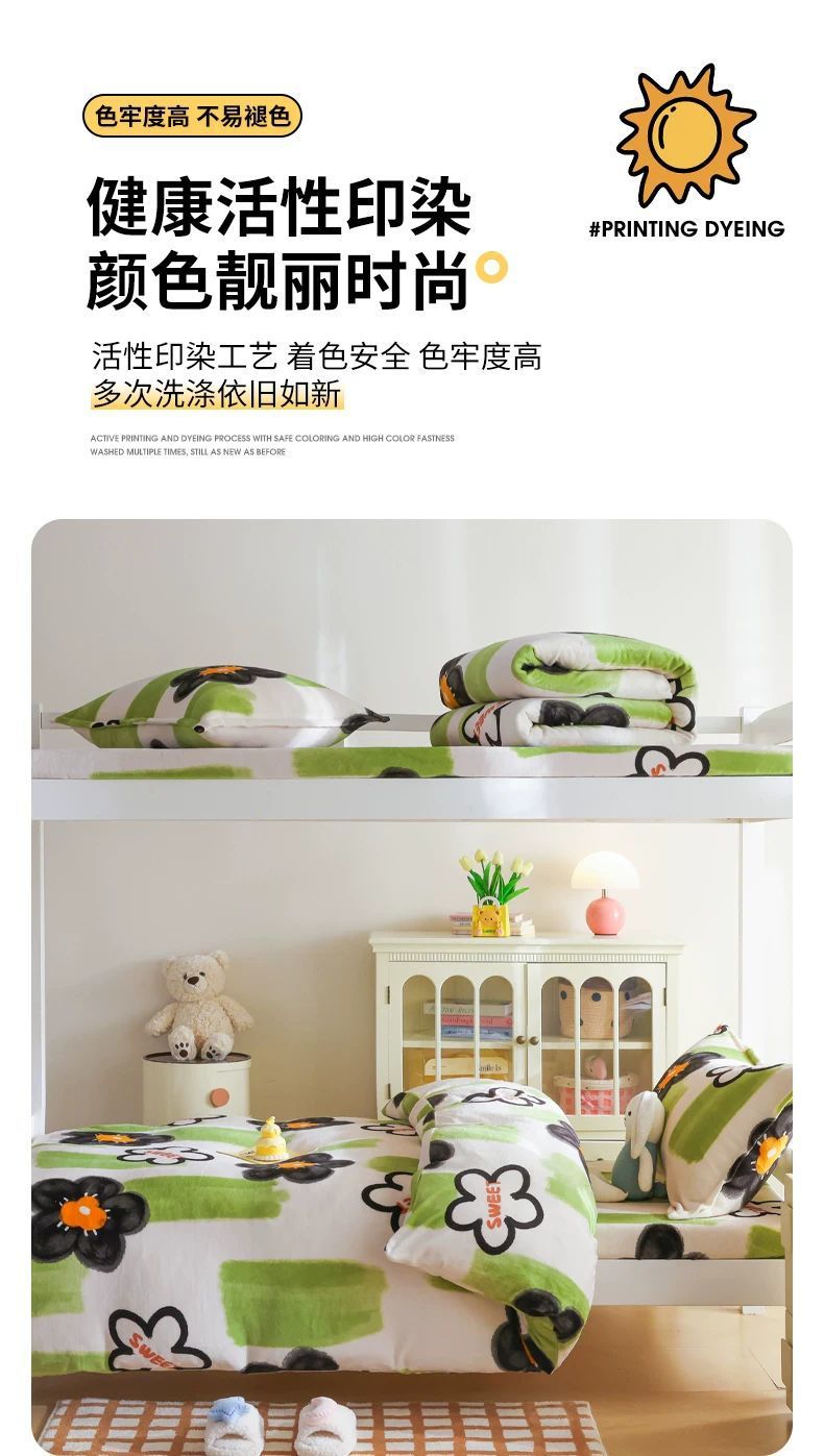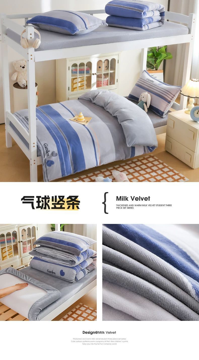Leche de seda de tres piezas dormitorio de estudiantes universitarios cama de cama de cama de seda de cama cubierta de sábanas de seda de coral de brida de seda de cuatro piezas