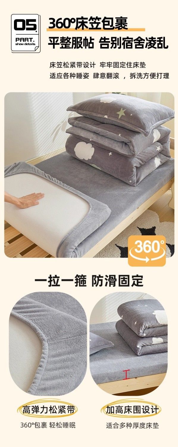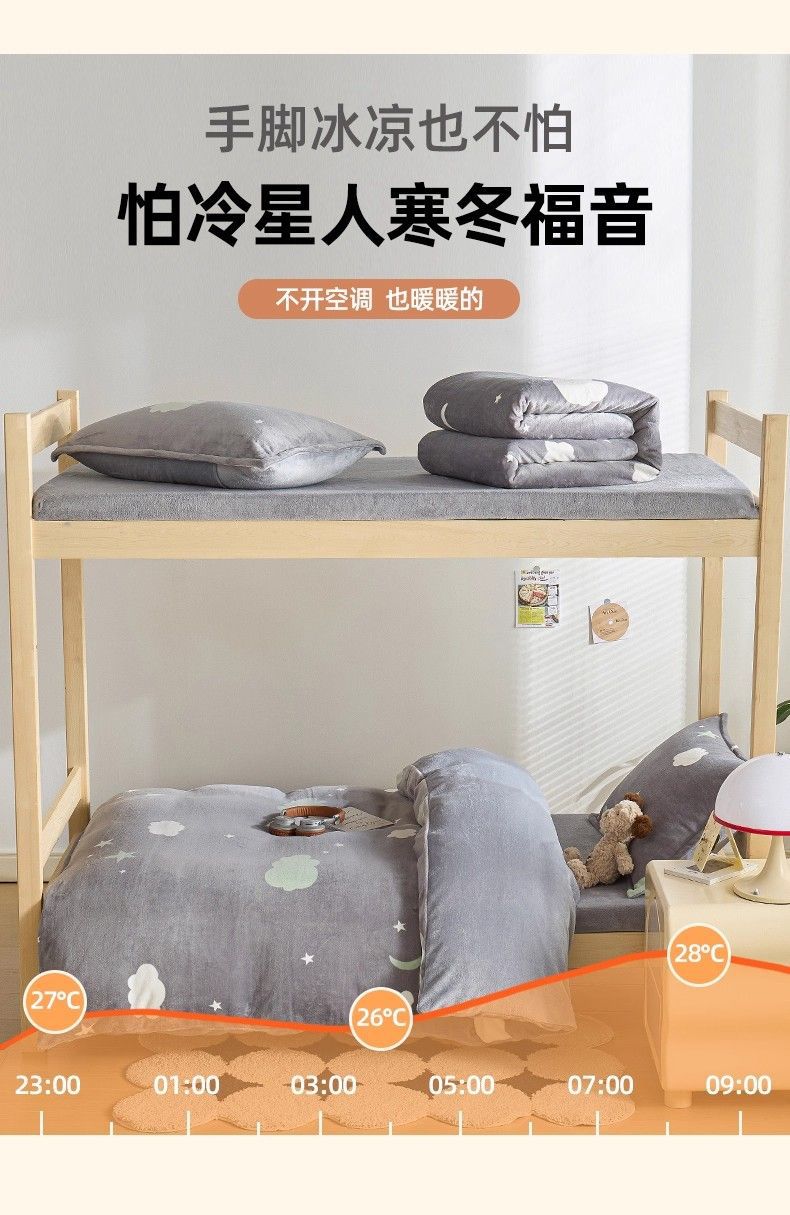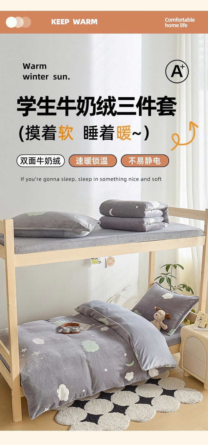 Dormitorio de estudiantes cama de tres piezas de invierno leche de coral cama de terciopelo estilo 90x190 doble cara terciopelo invierno engrosado