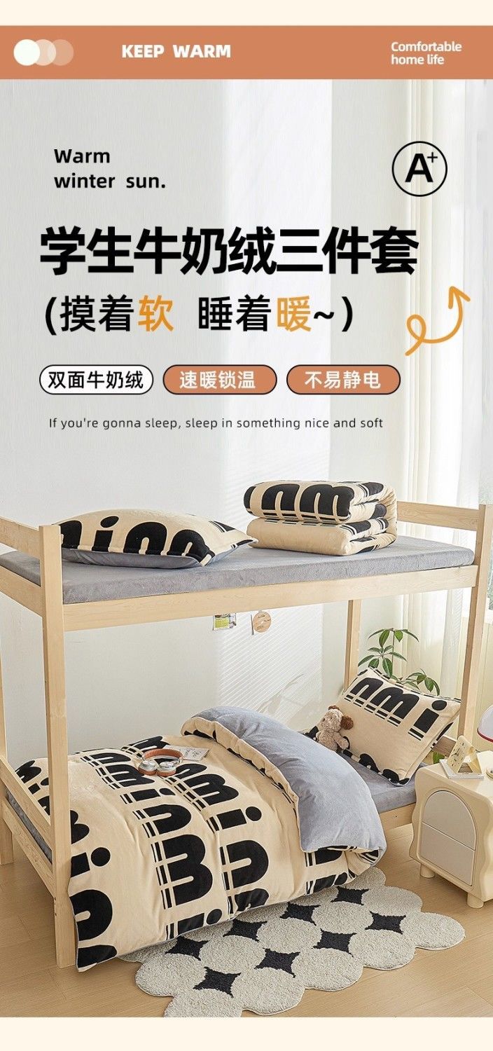 Dormitorio de estudiantes universitarios cama de tres piezas de seda de coral de invierno sábanas de cama de seda de invierno cama individual tipo seis