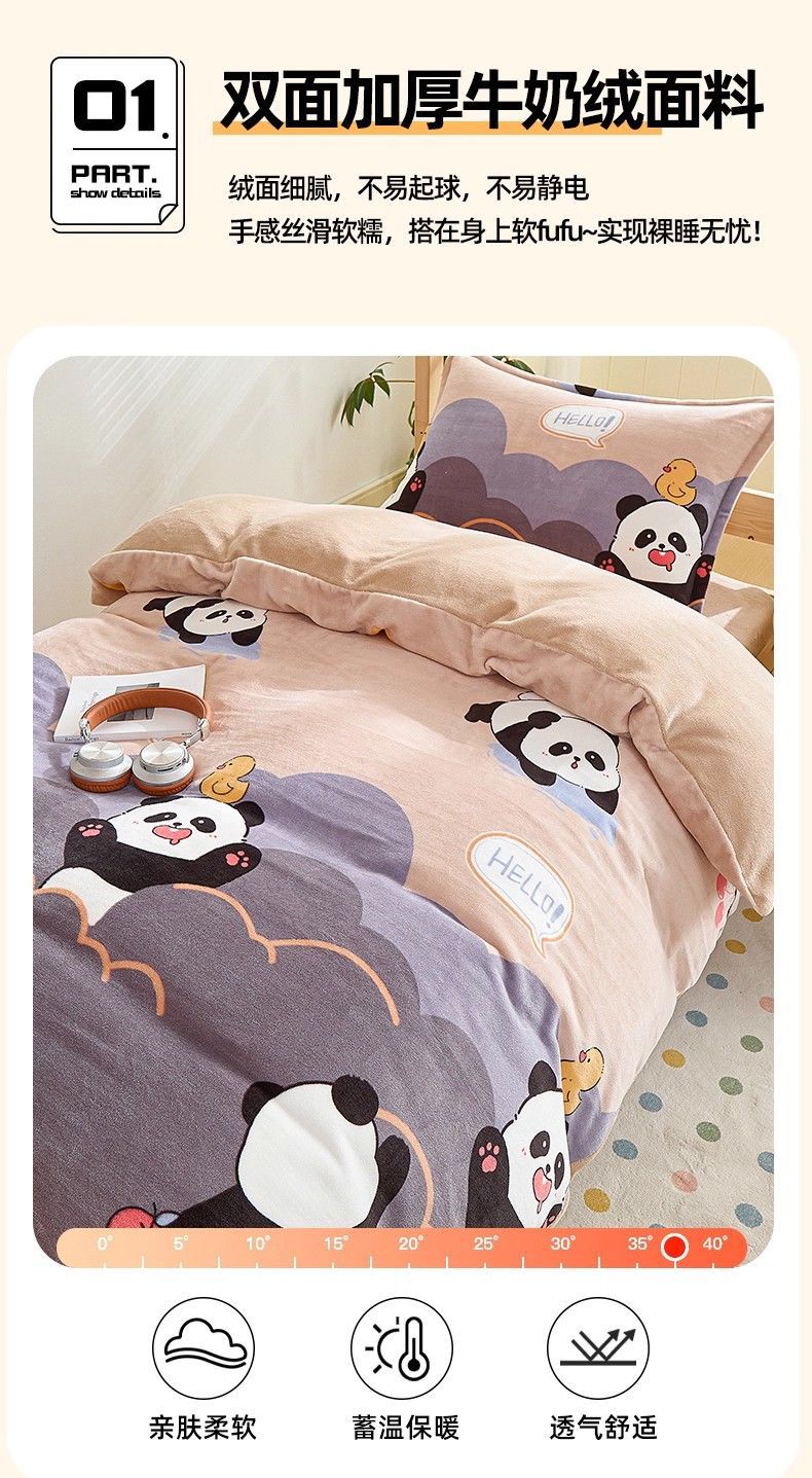 Set de cuatro piezas de cama de 0,9 m [colcha de cama + sábanas + funda de almohada + núcleo de almohada]