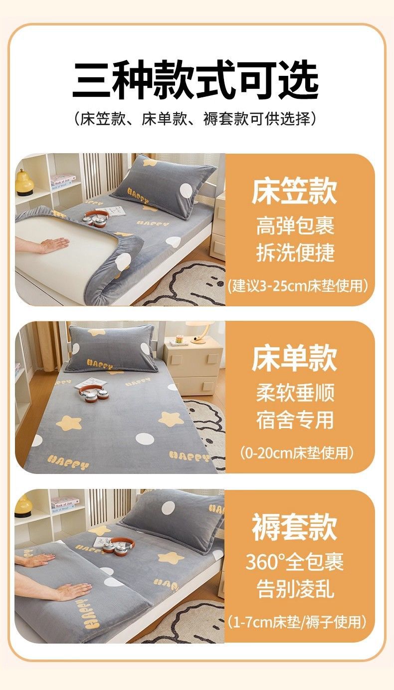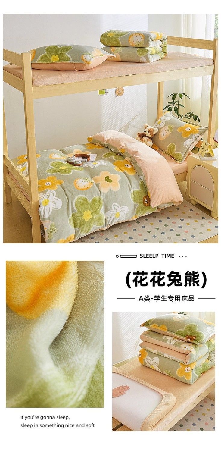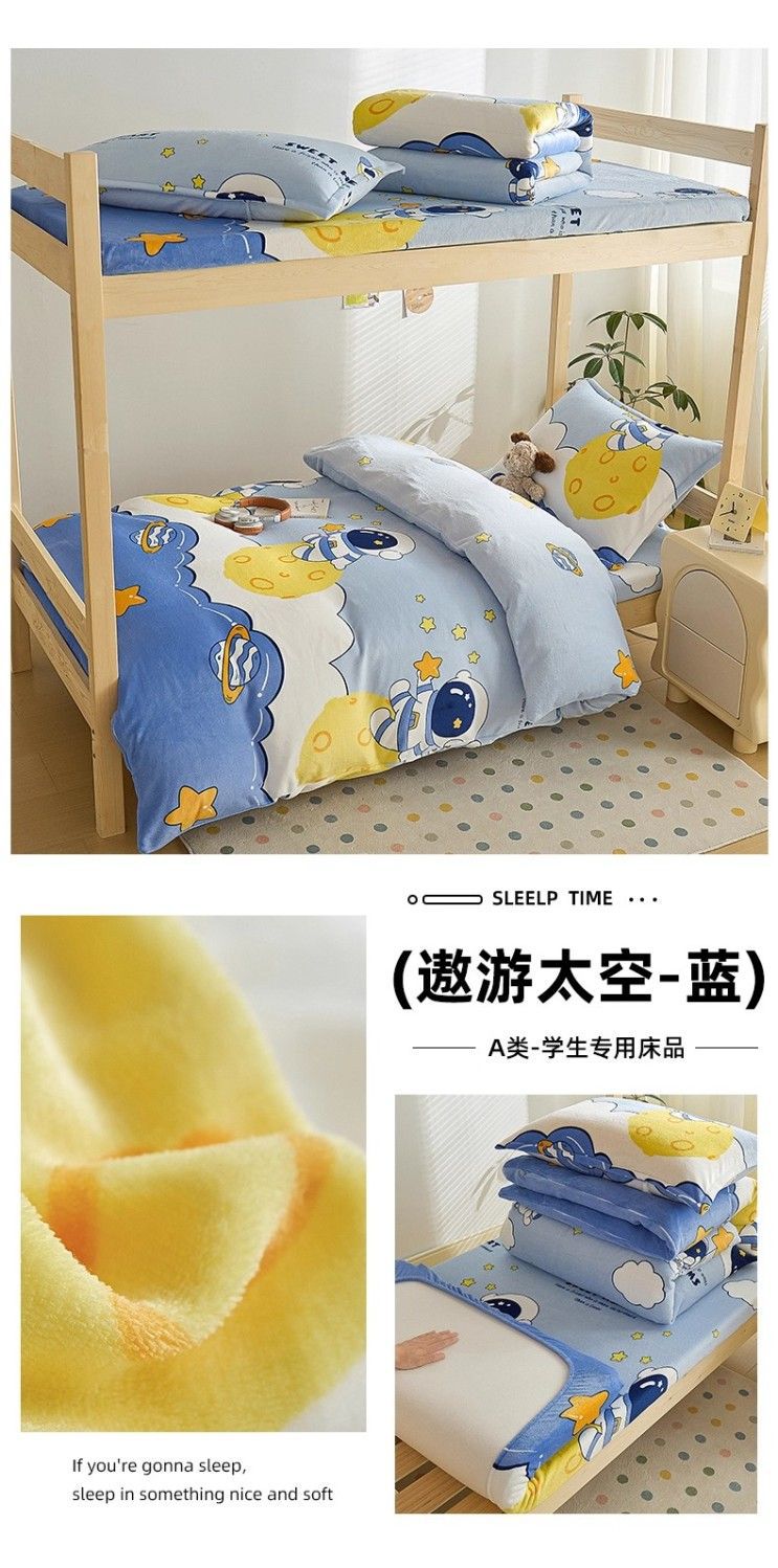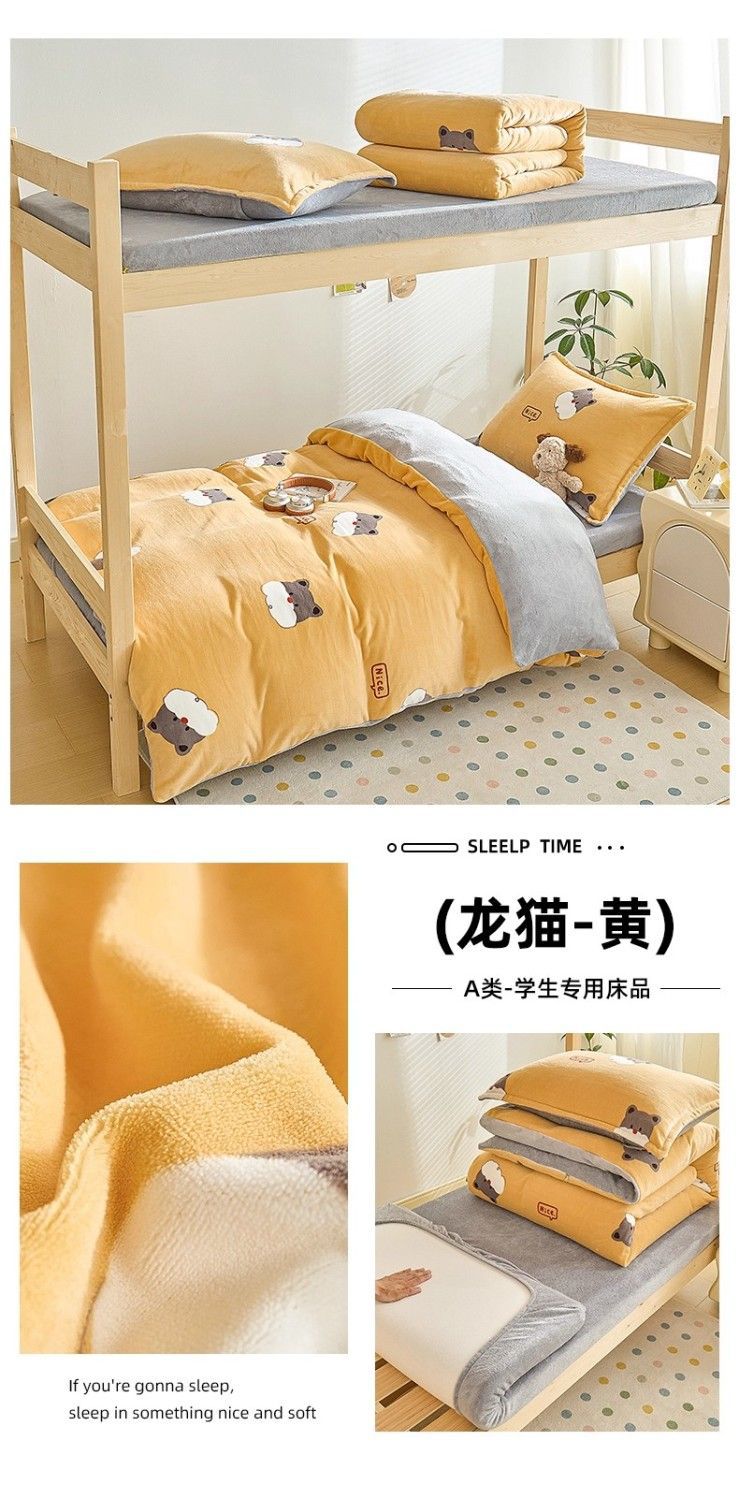 Dormitorio de estudiantes cama de tres piezas de seda de leche más seda de invierno sábanas de seda de coral no se pueden quitar dibujos animados