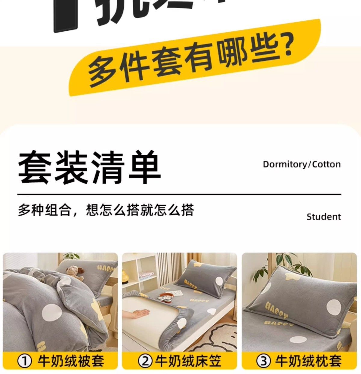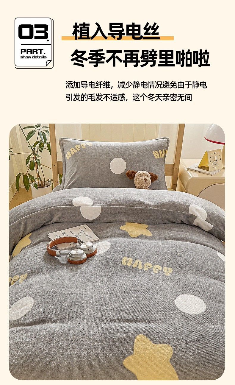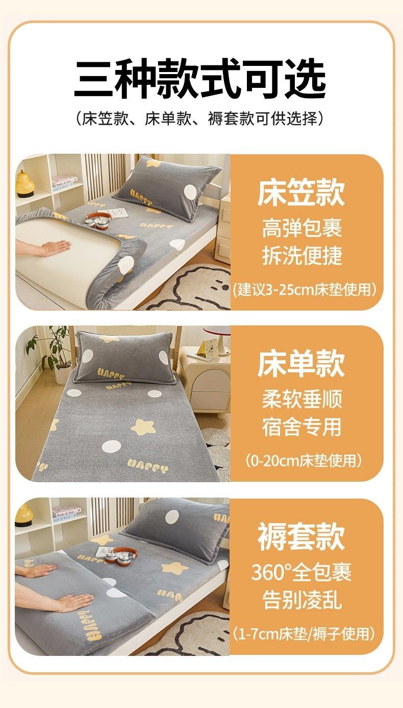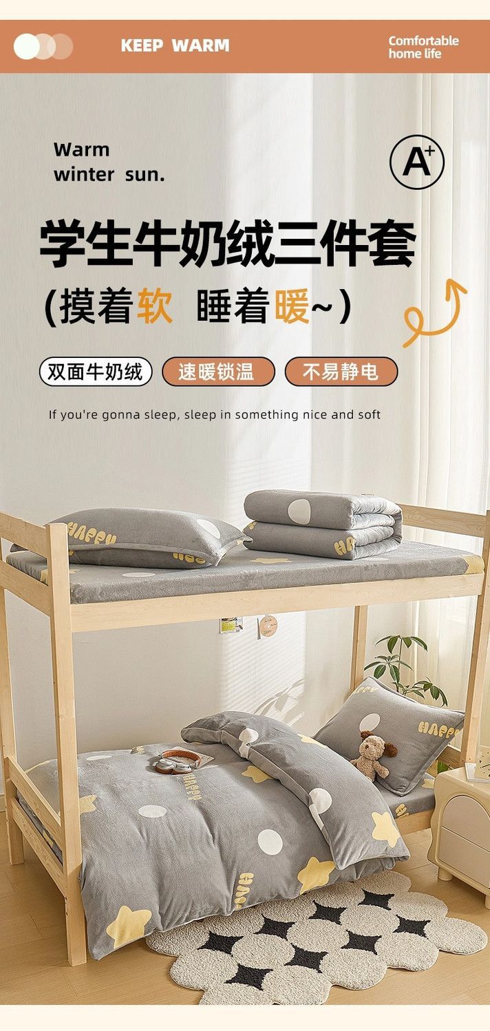 Dormitorio universitario de tres piezas de cama de terciopelo de leche doble cara sábanas de terciopelo gruesas cubierta cama de terciopelo de coral