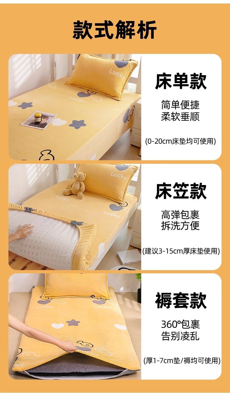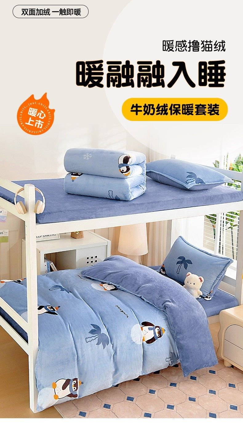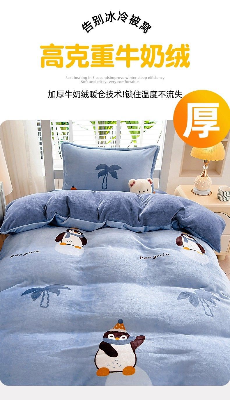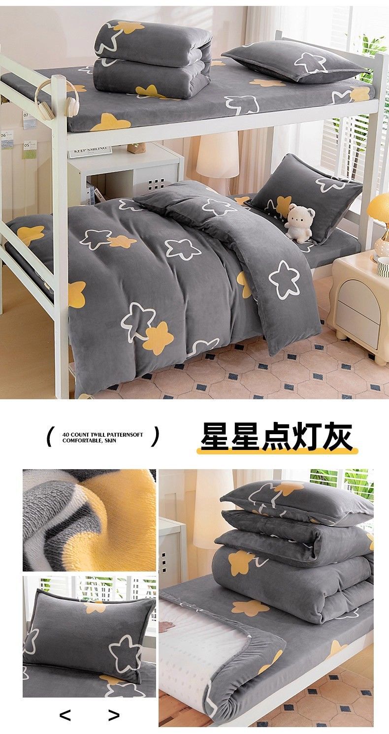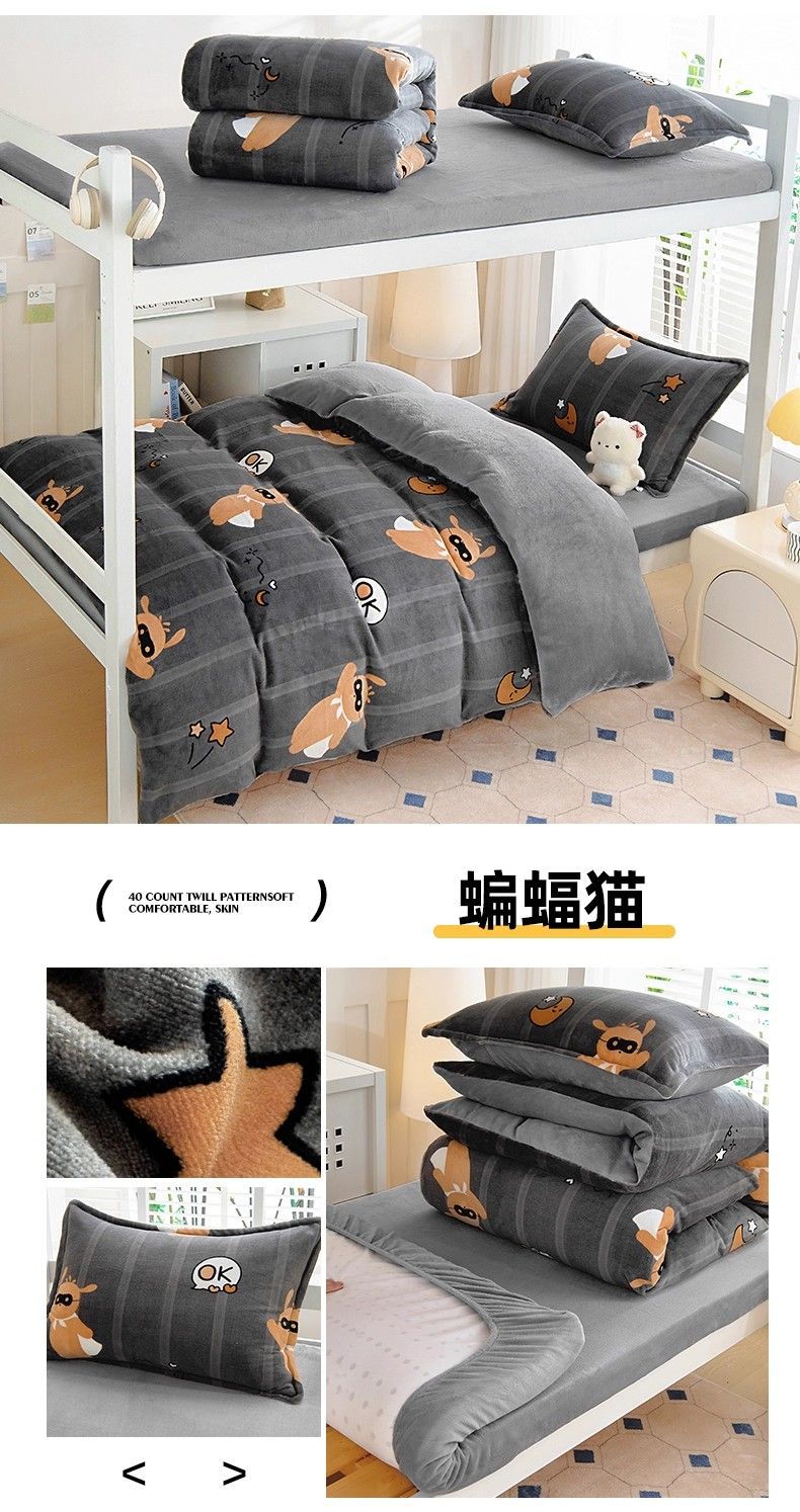 Dormitorio de estudiantes de invierno cama de tres piezas de cama de seda de leche de seda de coral de seda sola sopa cubierta de seda más gruesa