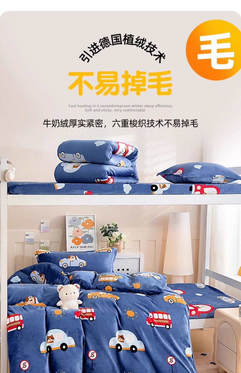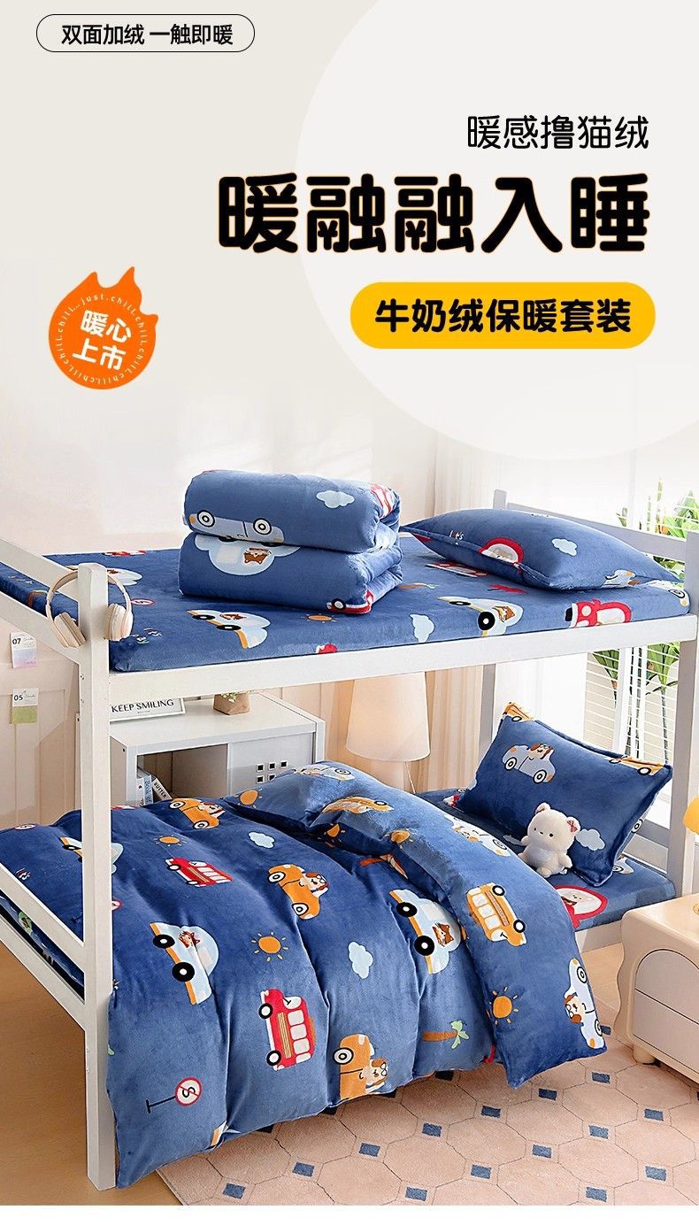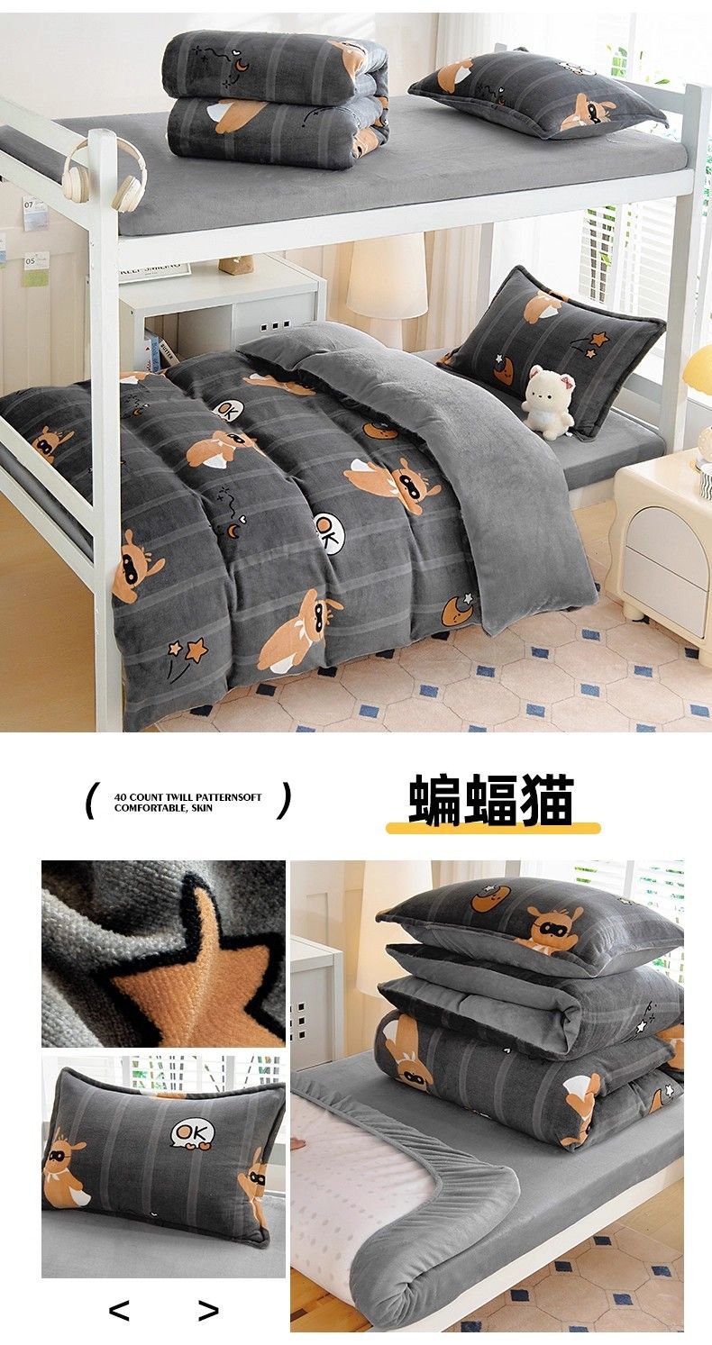 Dormitorio de estudiantes cama de tres piezas más cama de invierno de coral cama de cama de cama de cama para niños