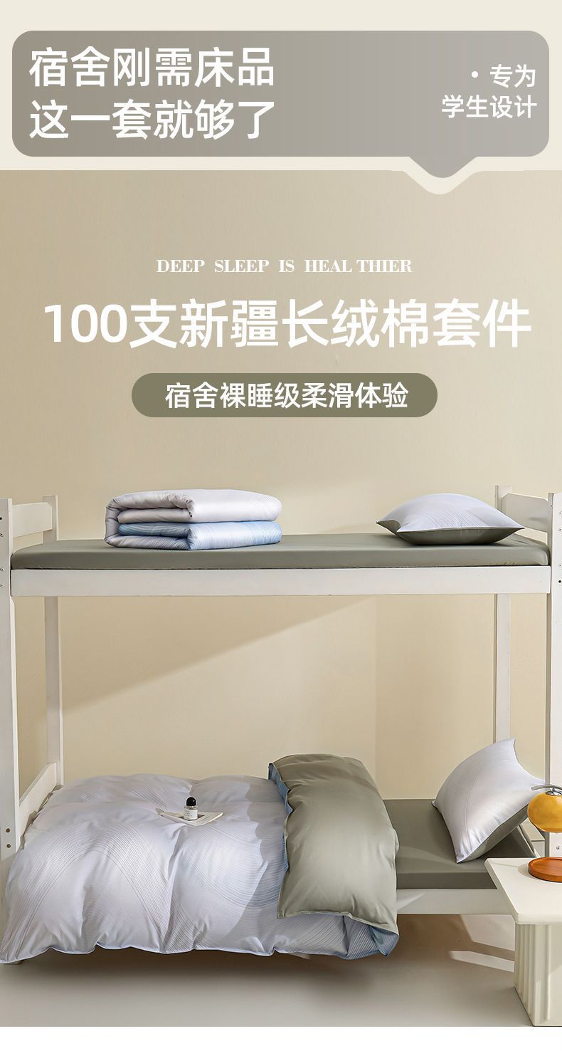 Cama de dormitorio de estudiantes de algodón largo 100S tres piezas de sábanas de algodón sábanas de cama única seis