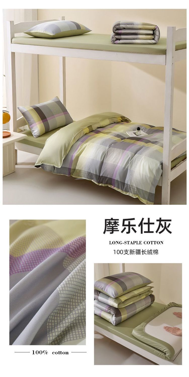 Cama de dormitorio de estudiantes universitarios de algodón largo de 100S tres piezas de sábanas de algodón cubierta de colcha de algodón especial para estudiantes de secundaria