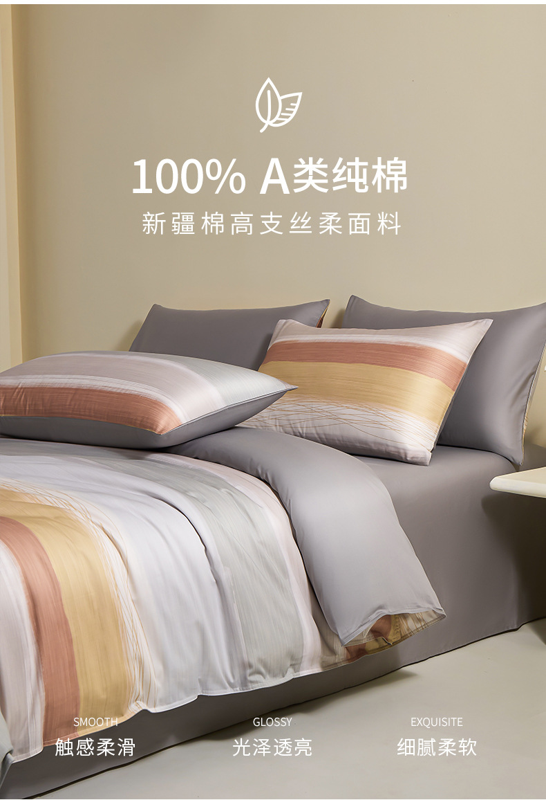 Cama de algodón de alta sensación de 100 piezas de algodón largo, cuatro piezas de sábanas de algodón, colchón de cama, tres piezas de cama