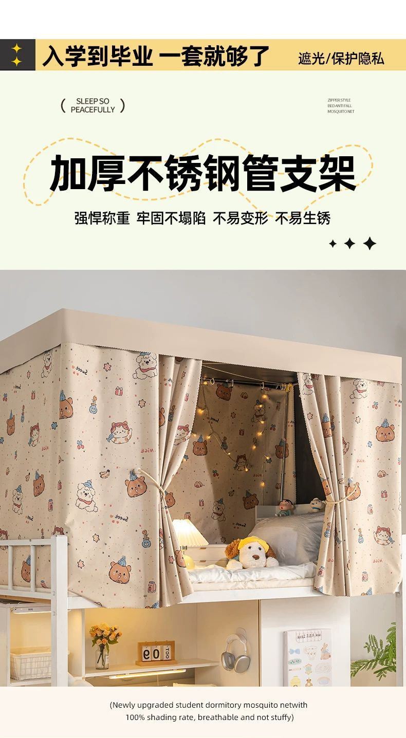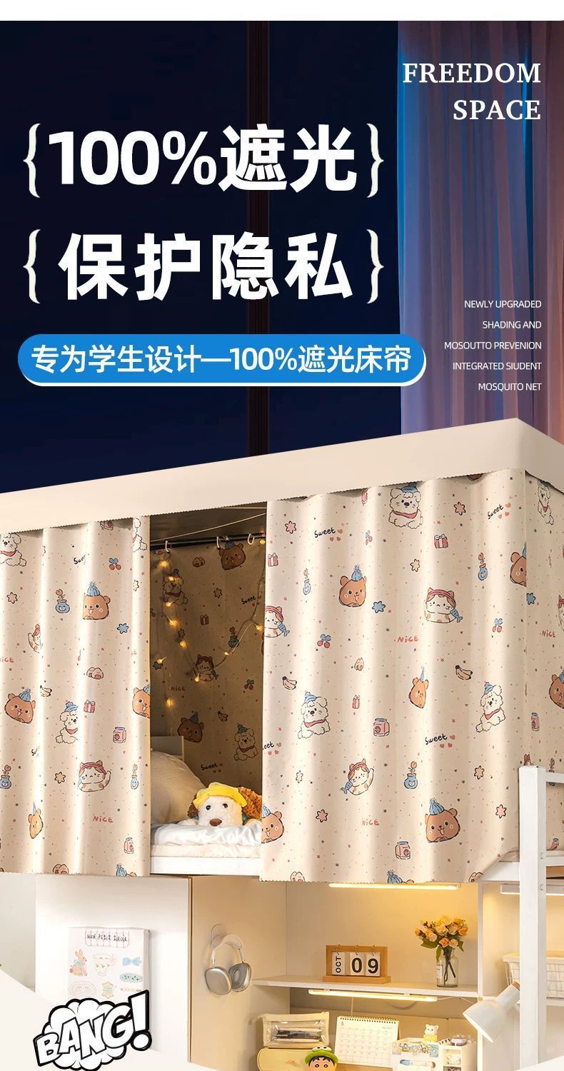 Dormitorio de estudiantes universitarios gruesa cortina de tela sombreante fuerte cortina de cama dormitorio cortina de cama inferior cortina de privacidad de mujer cortina de cama