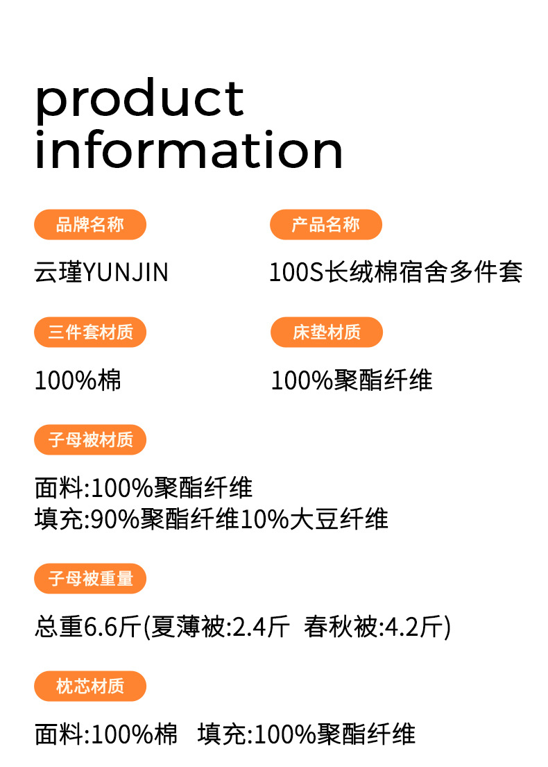 Especificaciones de tamaño床单款:0.9床三件套(被套150x200+床单120x220+枕套),床单款:0.9床春秋丝绵六件套(床单三件套+枕芯+3斤大豆被+加厚床垫),床单款:0.9床秋冬丝绵六件套(床单三件套+枕芯+5斤大豆被+加厚床垫),床单款:0.9床春秋棉花六件套(床单三件套+枕芯+3斤棉花被+加厚床垫),床单款:0.9床秋冬棉花六件套(床单三件套+枕芯+5斤棉花被+加厚床垫),床单款:0.9米床七件套赠旅行袋【大豆子母被约6.6斤】(三件套+夏被+春秋被+枕芯+床垫)95%家,床笠款:0.9床三件套(被套150x200+床笠90x190+枕套),床笠款:0.9床春秋丝绵六件套(床笠三件套+枕芯+3斤大豆被+加厚床垫),床笠款:0.9床秋冬丝绵六件套(床笠三件套+枕芯+5斤大豆被+加厚床垫),床笠款:0.9床春秋棉花六件套(床笠三件套+枕芯+3斤棉花被+加厚床垫),床笠款:0.9床秋冬棉花六件套(床笠三件套+枕芯+5斤棉花被+加厚床垫),床笠款:0.9米床七件套赠旅行袋【大豆子母被约6.6斤】(三件套+夏被+春秋被+枕芯+床垫)95%家,床单款:1.2床三件套(被套150x200+床单150x220+枕套),床单款:1.2床春秋丝绵六件套(床单三件套+枕芯+3斤大豆被+加厚床垫),床单款:1.2床秋冬丝绵六件套(床单三件套+枕芯+5斤大豆被+加厚床垫),床单款:1.2床春秋棉花六件套(床单三件套+枕芯+3斤棉花被+加厚床垫),床单款:1.2床秋冬棉花六件套(床单三件套+枕芯+5斤棉花被+加厚床垫),床单款:1.2米床七件套赠旅行袋【大豆子母被约6.6斤】(三件套+夏被+春秋被+枕芯+床垫)95%家,床笠款:1.2床三件套(被套150x200+床笠120x200+枕套),床笠款:1.2床春秋丝绵六件套(床笠三件套+枕芯+3斤大豆被+加厚床垫),床笠款:1.2床秋冬丝绵六件套(床笠三件套+枕芯+5斤大豆被+加厚床垫),床笠款:1.2床春秋棉花六件套(床笠三件套+枕芯+3斤棉花被+加厚床垫),床笠款:1.2床秋冬棉花六件套(床笠三件套+枕芯+5斤棉花被+加厚床垫),床笠款:1.2米床七件套赠旅行袋【大豆子母被约6.6斤】(三件套+夏被+春秋被+枕芯+床垫)95%家