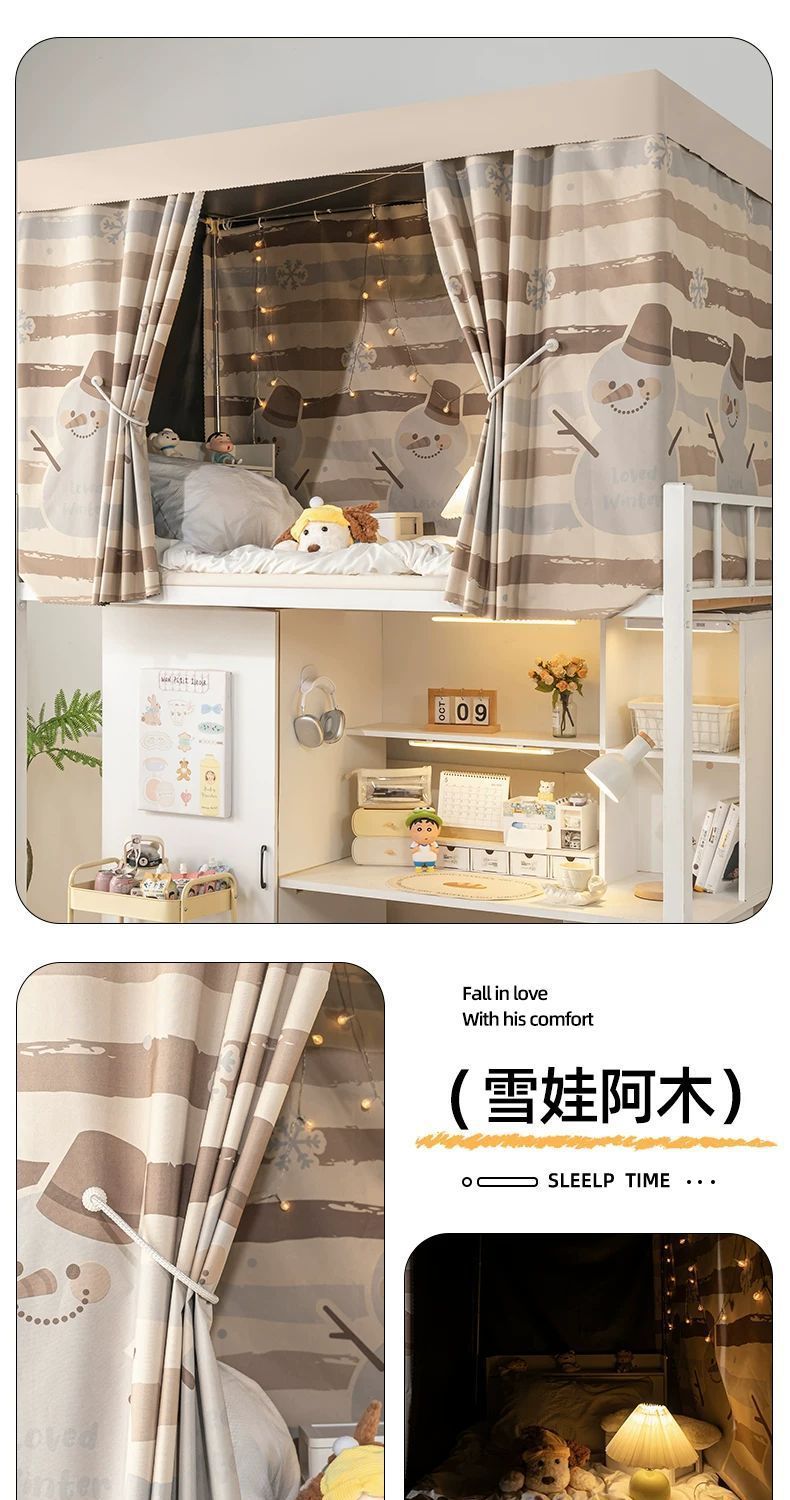 Dormitorio de estudiantes universitarios cortina de cama superior e inferior fuerte cortina de tela de sombración completa cortina de tela de sombración de cama inferior dormitorio de mujeres cortina de cama