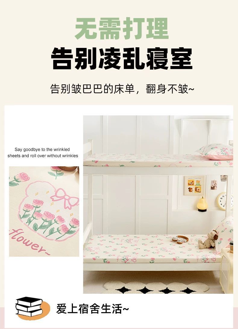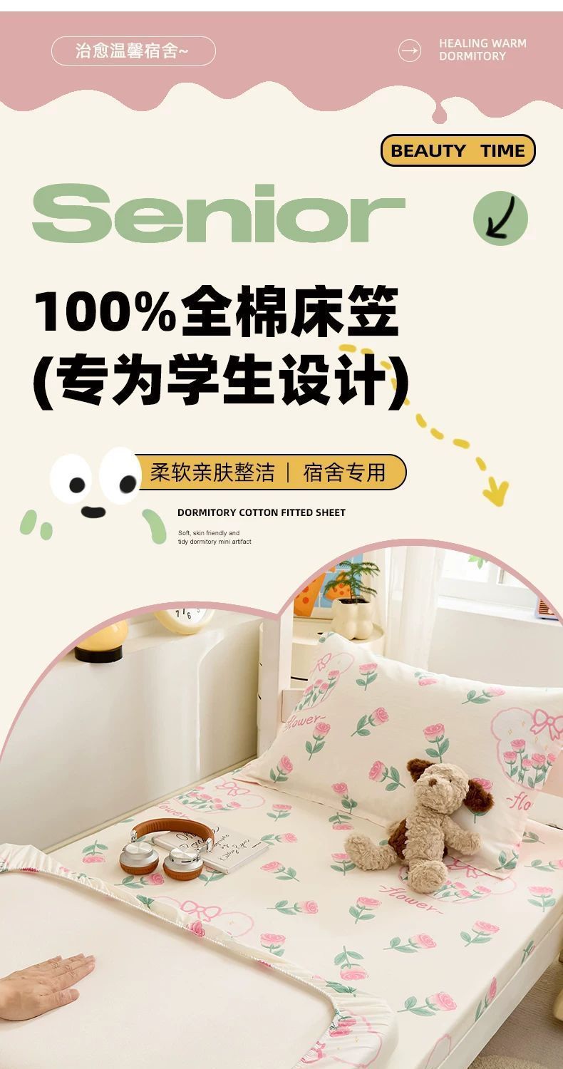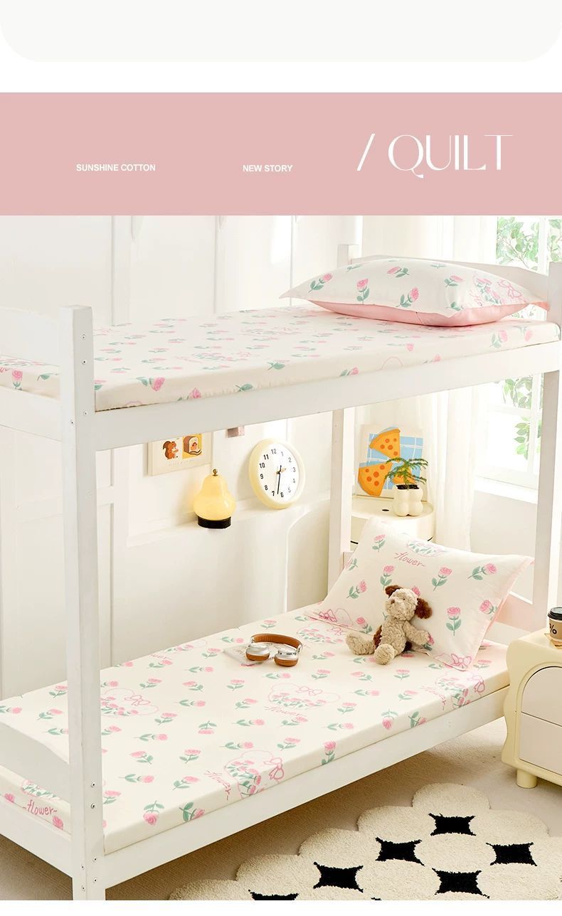 Sombrilla de cama de algodón de una sola pieza, cubierta de colchón de 90x190 para dormitorio de estudiantes, cama de litera, funda de edredón individual