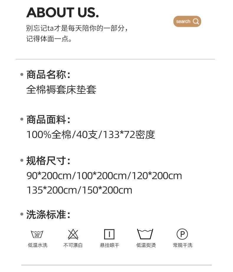 | Especificaciones de tamaño | 80x190cm cubierta de colchón, 90x190cm cubierta de colchón, 90x200cm cubierta de colchón, 100x200cm cubierta de colchón, 120x200cm cubierta de colchón, 150x200cm cubierta de colchón, 180x200cm cubierta de colchón, 200x230cm cubierta de colchón, 80x190cm cubierta de colchón + 1 cubierta de almohada, 90x190cm cubierta de colchón + 1 cubierta de almohada, 90x200cm cubierta de colchón + 1 cubierta de almohada, 100x200cm cubierta de colchón + 1 cubierta de almohada, 120x200cm colchón + 1 colchón, 150x200cm colchón + 2 colchones, 180x200cm colchón + 2 colchones, 200x230cm colchón + 2 colchones |