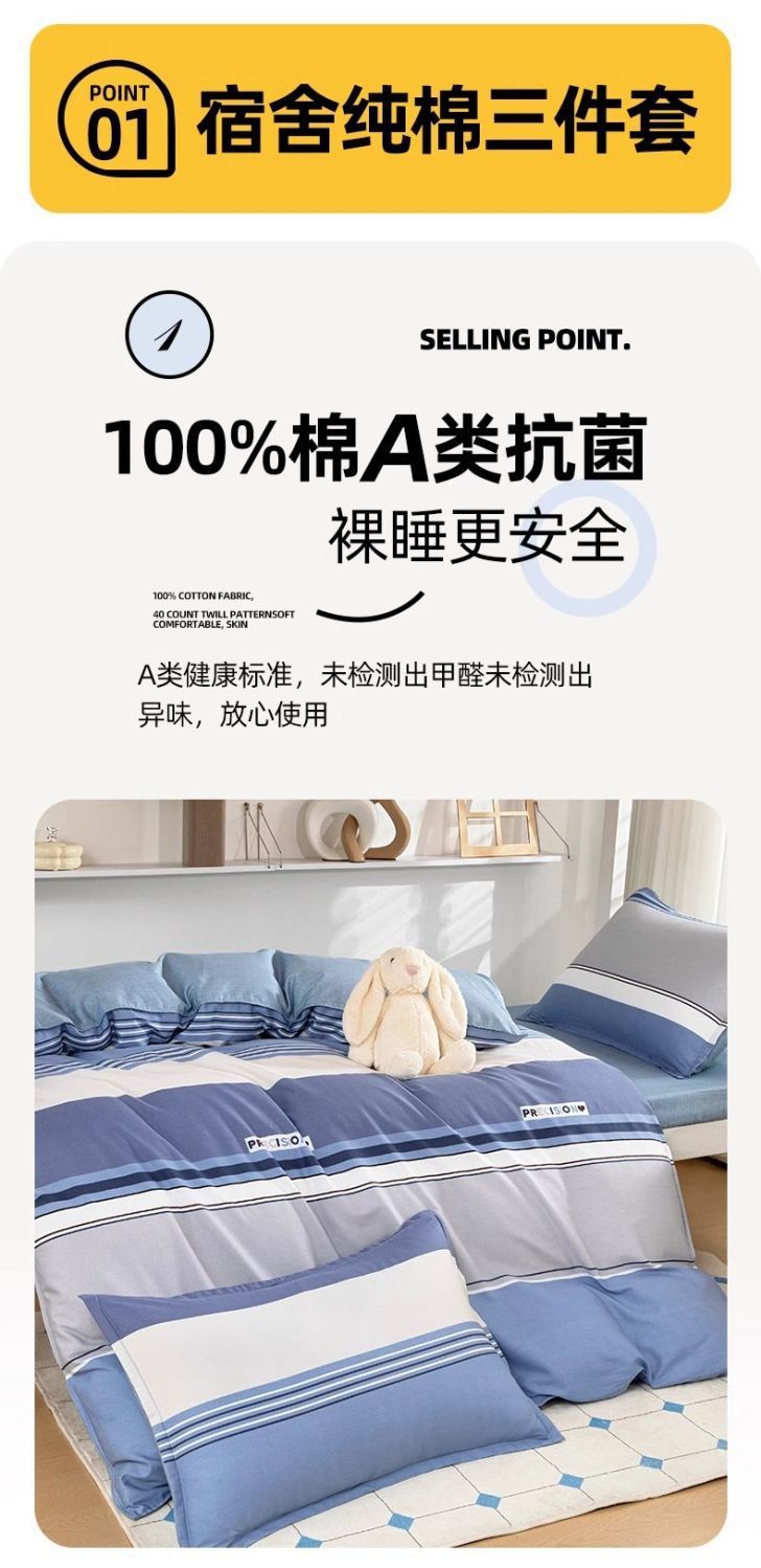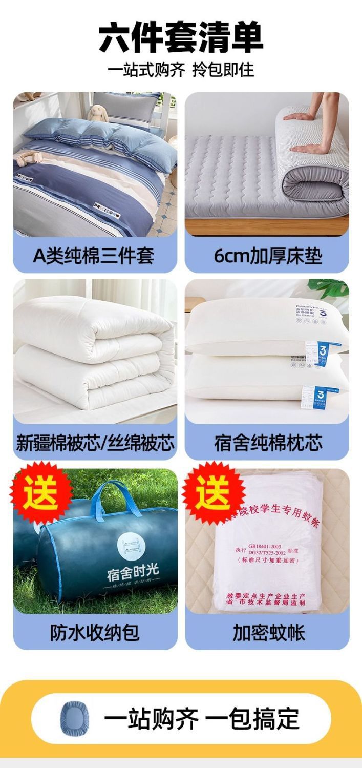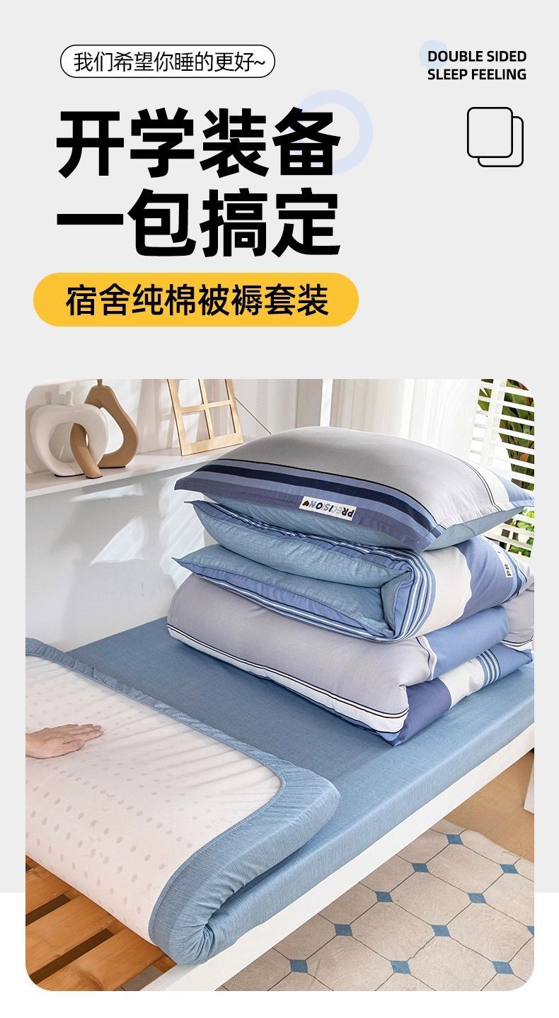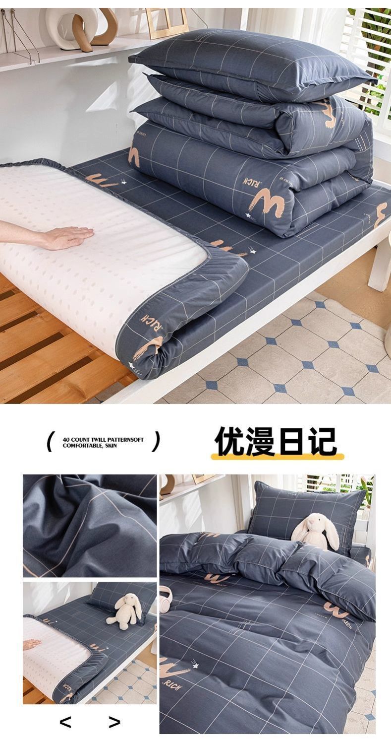 dormitorio de estudiantes de algodón, cama de cinco piezas, conjunto completo de edredón de algodón 100%, conjunto completo de colchón individual