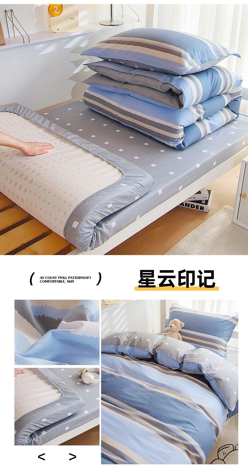 | Especificaciones de tamaño | Primavera y otoño: 0.9 cama cama 0.9 sábanas de cinco piezas juegos "5 jin edredón de soja", 0.9 sábanas de cinco piezas juegos de colchón "colchón grueso sin edredón", primavera y otoño: 0.9 sábanas de ocho piezas juegos "3 jin edredón de soja + colchón de cama", otoño y invierno: 0.9 sábanas de ocho piezas juegos "5 jin edredón de soja + colchón de cama", 0.9 sábanas de nueve piezas juegos de edredón de madre * 2 + colchón de cama |