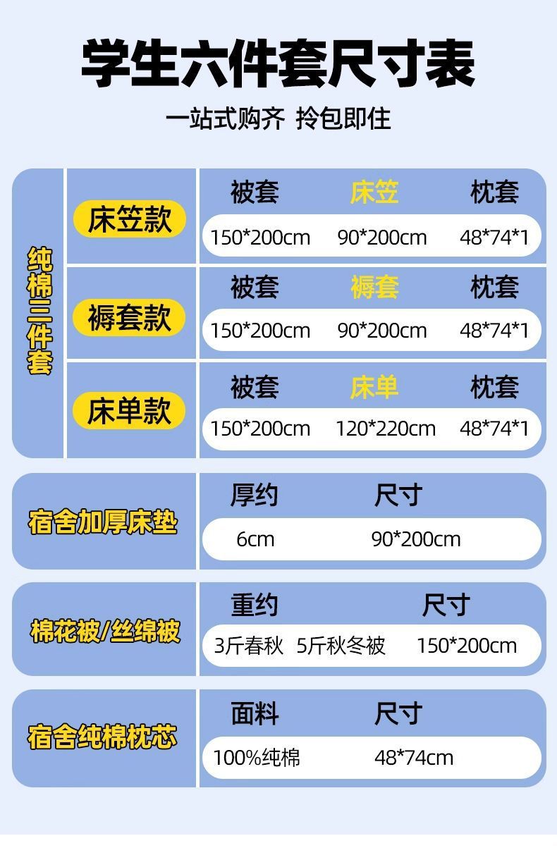 Dormitorio de estudiantes de algodón cinco piezas de cama un conjunto completo de edredones seis piezas de cama de algodón único conjunto completo de colchones