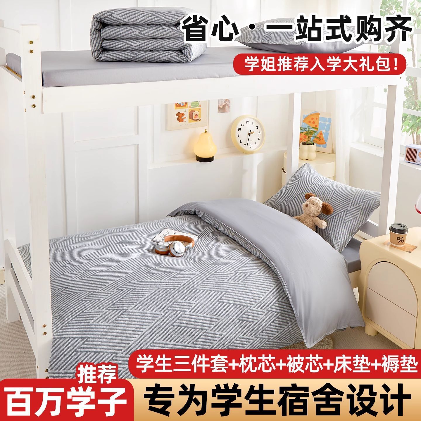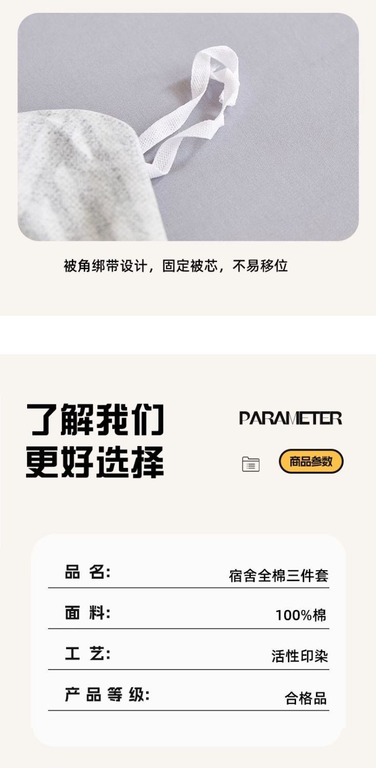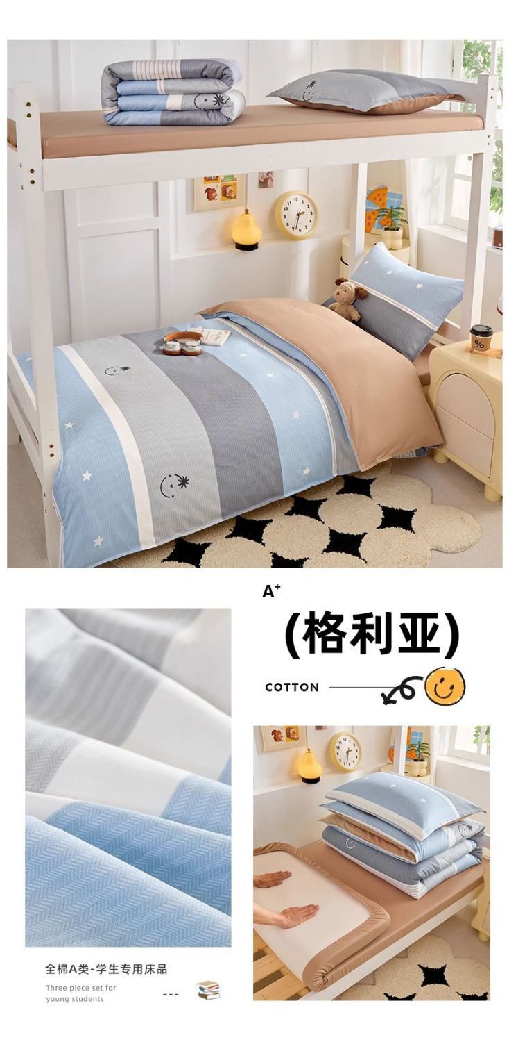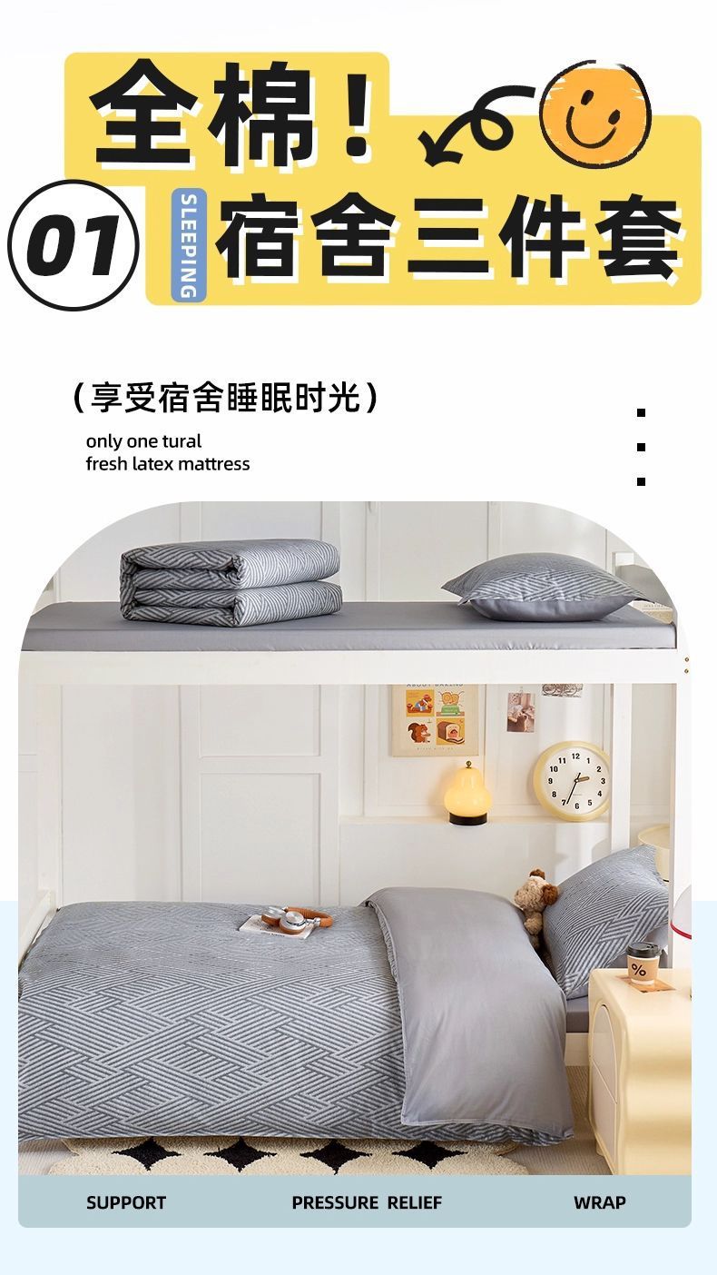 Ropa de cama de dormitorio de estudiantes, funda de edredón, juego de tres piezas, cama de algodón de algodón individual, colchón de seis piezas 90x190x200