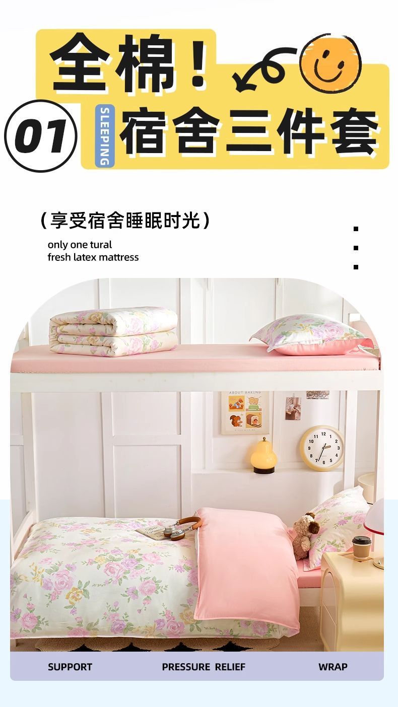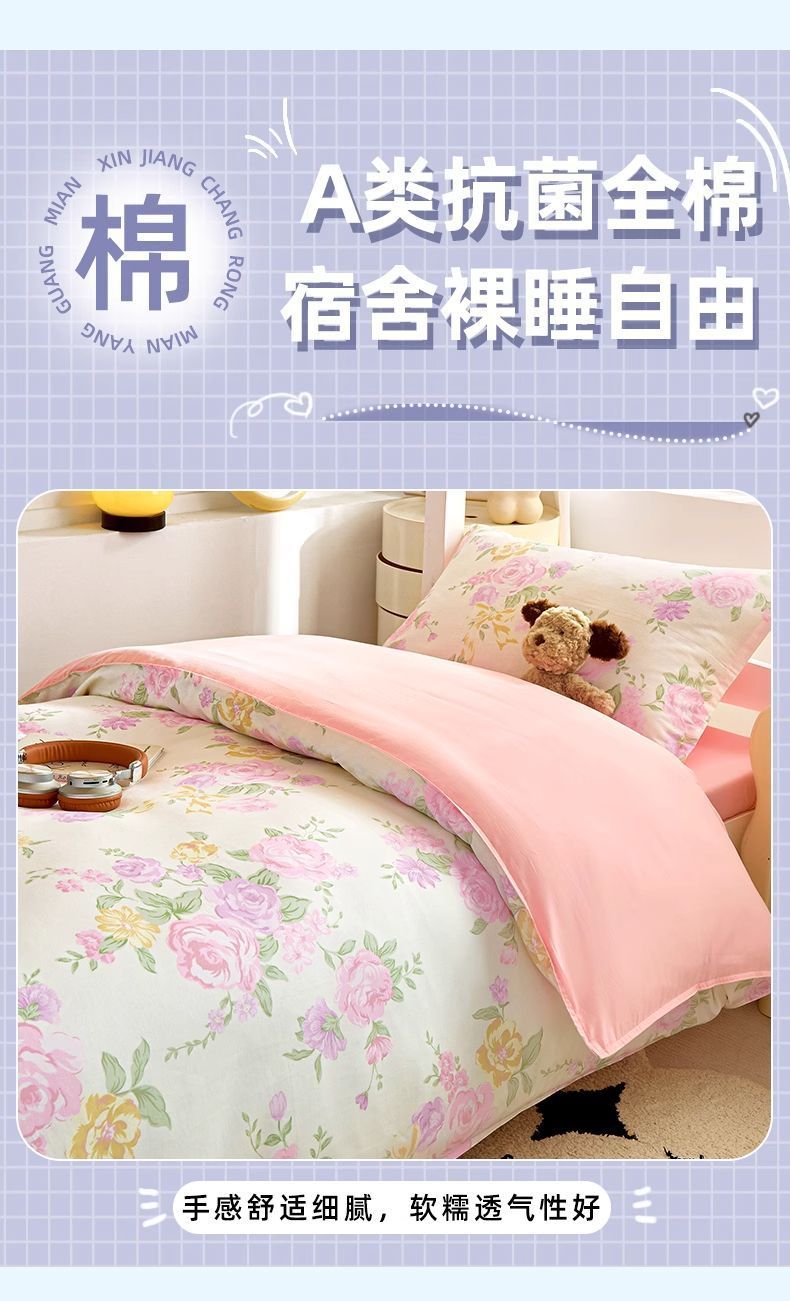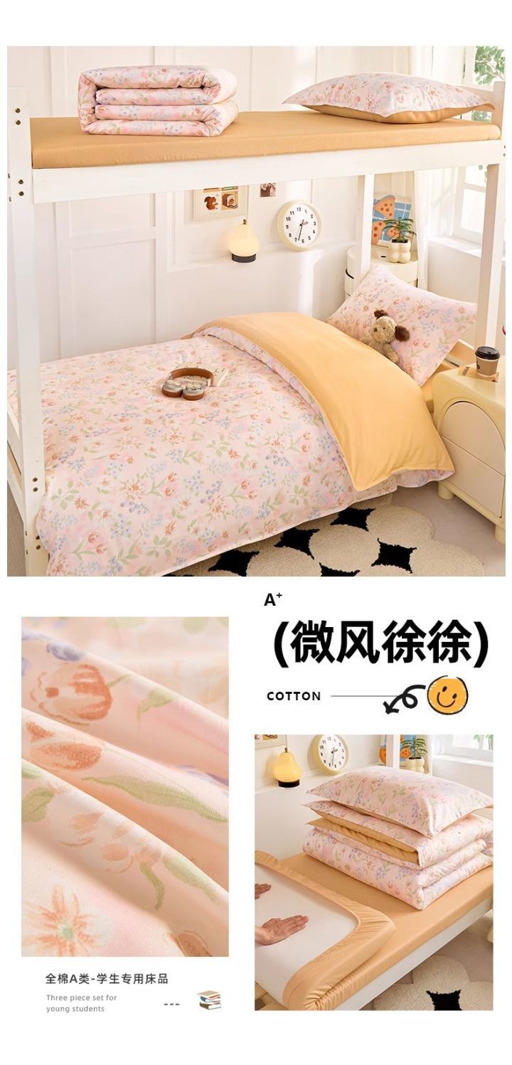 Sábanas de dormitorio de estudiantes universitarios cubierta de tres piezas de algodón 100% cubierta de algodón dormitorio ropa de cama individual niñas