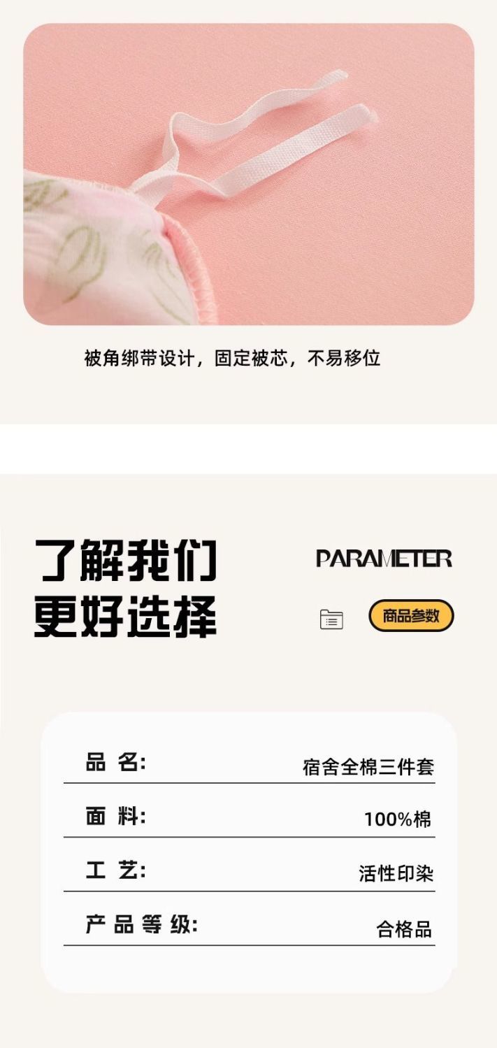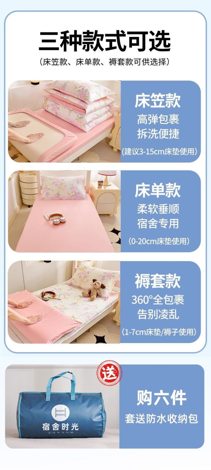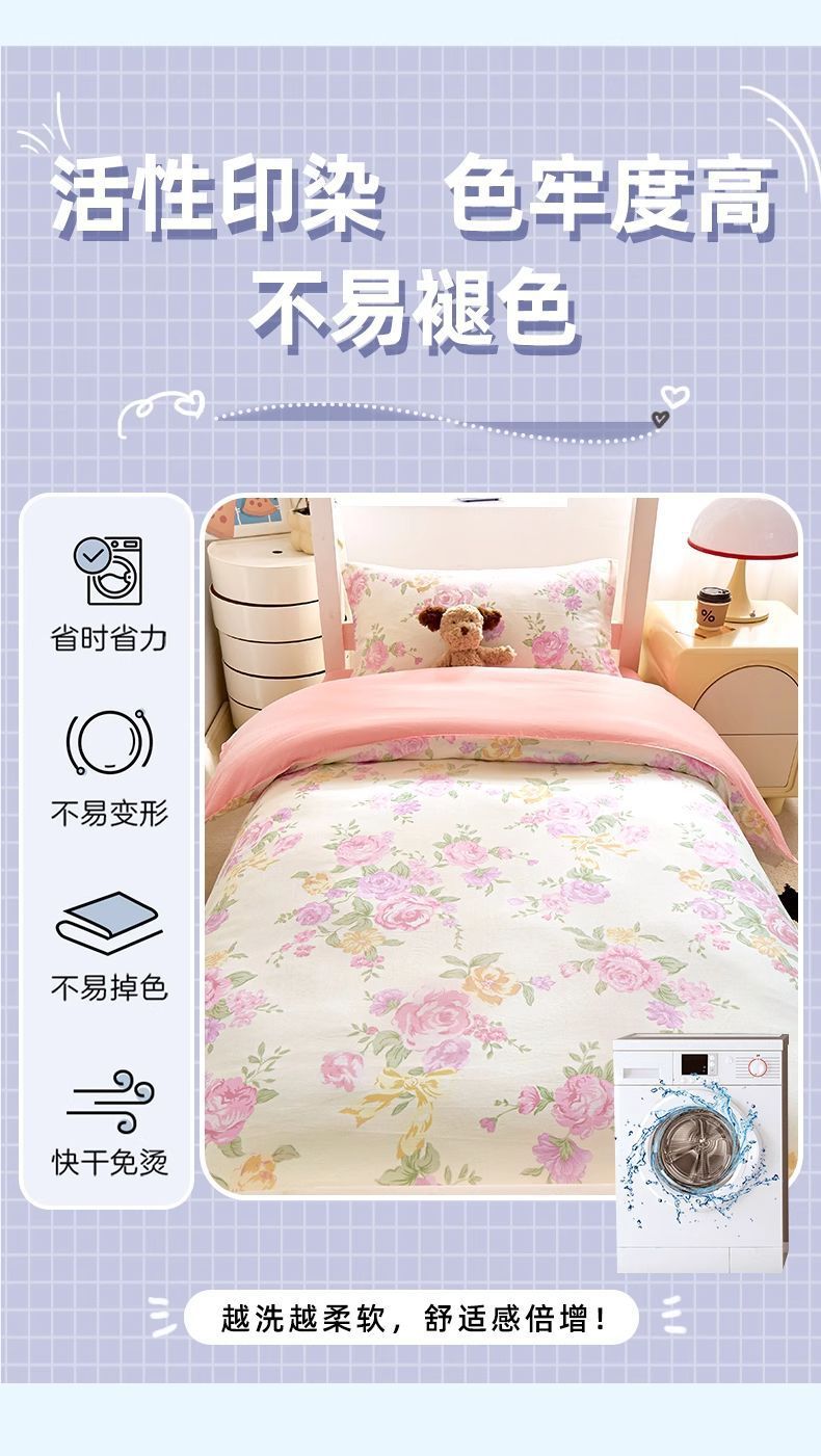 Sábanas de dormitorio de estudiantes universitarios cubierta de tres piezas de algodón 100% cubierta de algodón dormitorio ropa de cama individual niñas