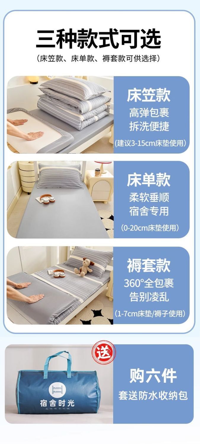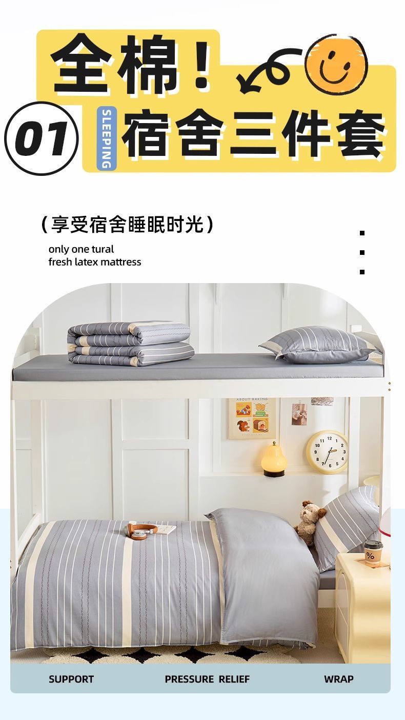 Dormitorio de estudiantes cama de tres piezas cama de cama de 90x190 algodón sábanas de dormitorio de algodón cubierta cama de seis piezas