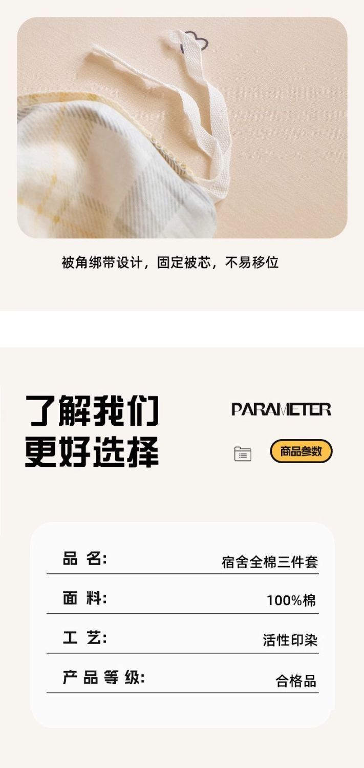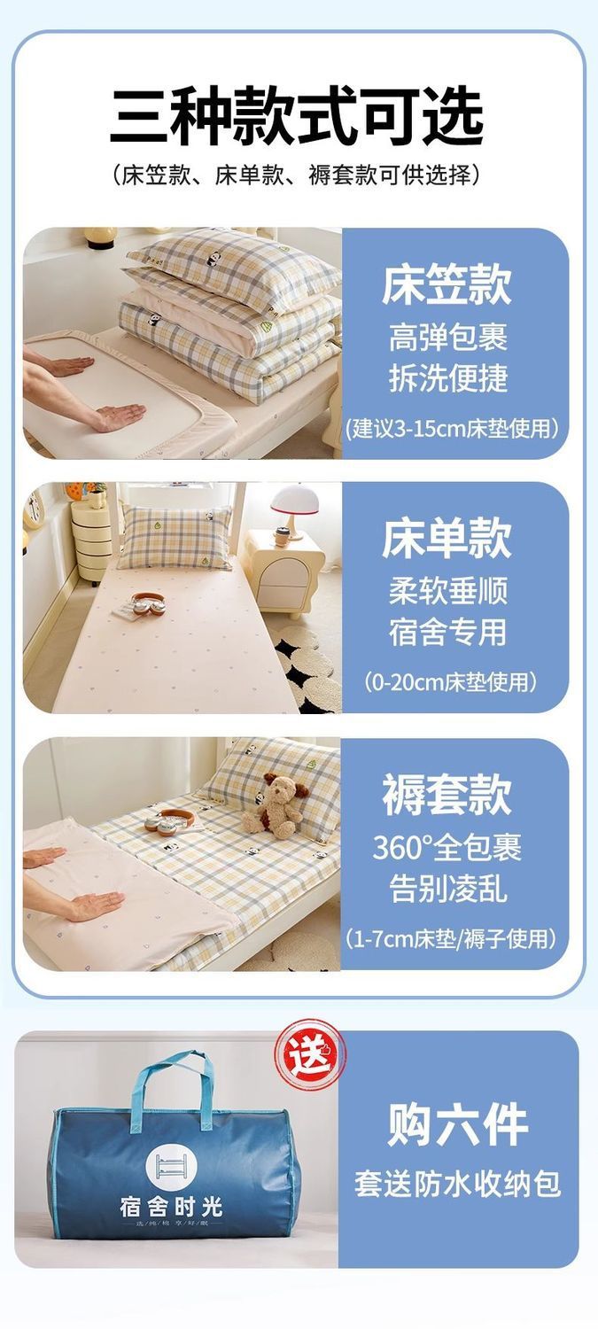 dormitorio de estudiantes de algodón de tres piezas de cama de algodón 90x190x200 sábanas de dormitorio cubierta de cuatro piezas de conjunto