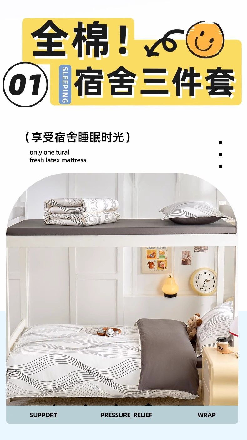 Dormitorio de estudiantes universitarios tres piezas de sábanas de algodón sábanas de algodón 90x190 colchón de núcleo conjunto completo