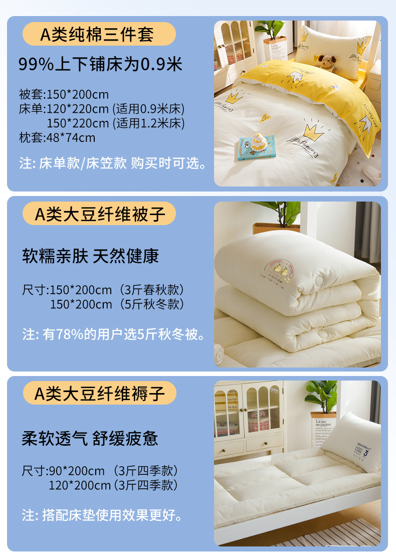 Otoño y invierno: cama de 0,9 m de cinco piezas [sábanas de tres piezas + núcleo de almohada + edredón de soja de 5 kg]