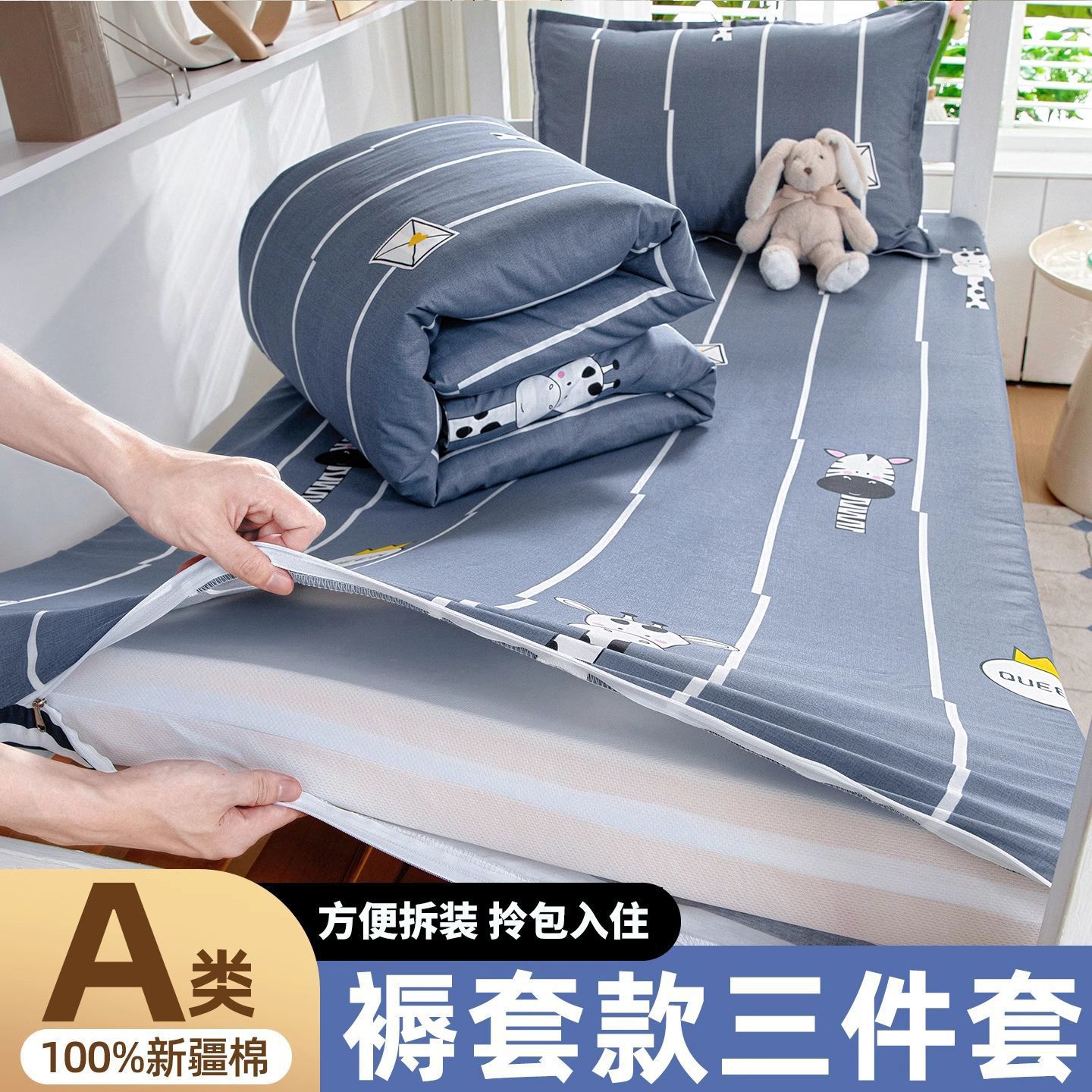 Algodón alumno dormitorio colchón cubierta de ropa de cama de tres piezas cubierta de colchón 90x190 dormitorio colchón único