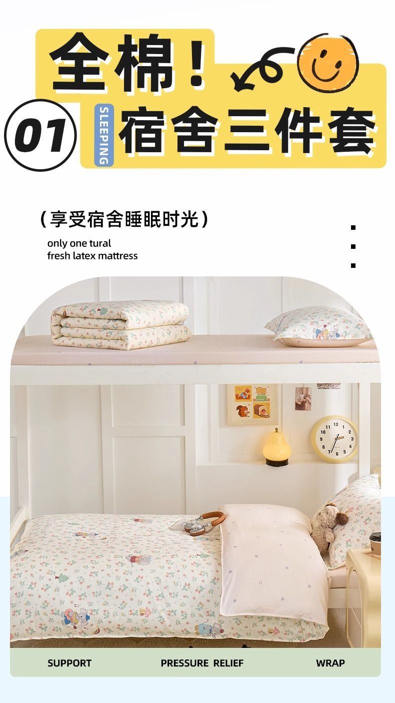 dormitorio de estudiantes ropa de cama de tres piezas set 100 sábanas de algodón cubierta dormitorio colcha con núcleo de colcha