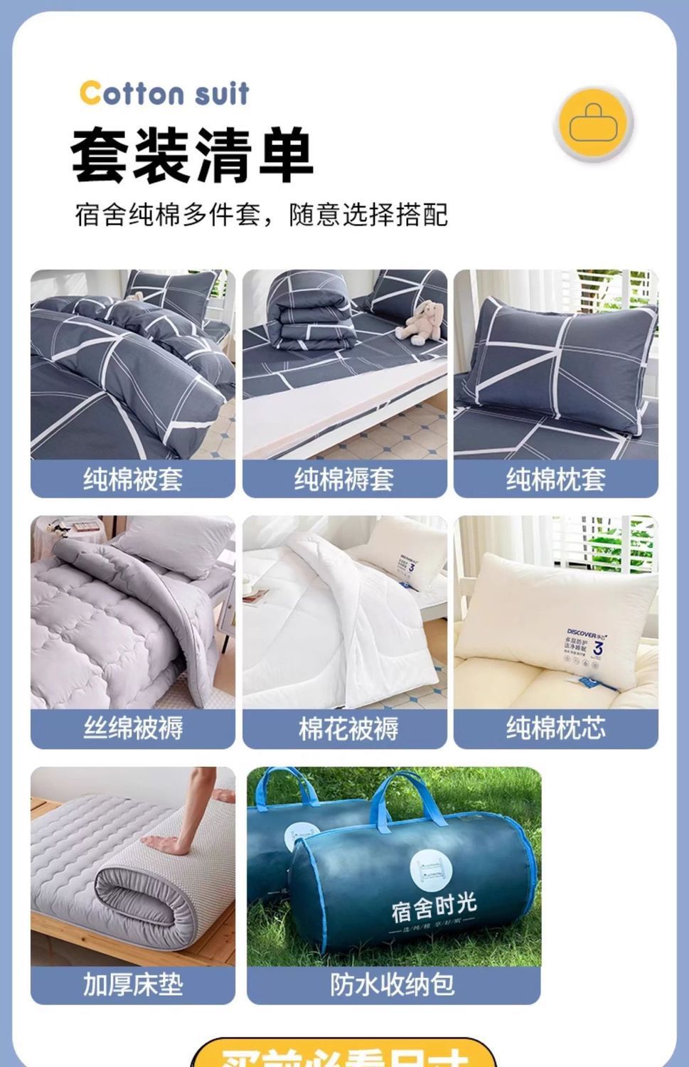 Dormitorio de estudiantes de cama de tres piezas set colchón 90x190 una sola persona algodón colchón set de cuatro piezas set