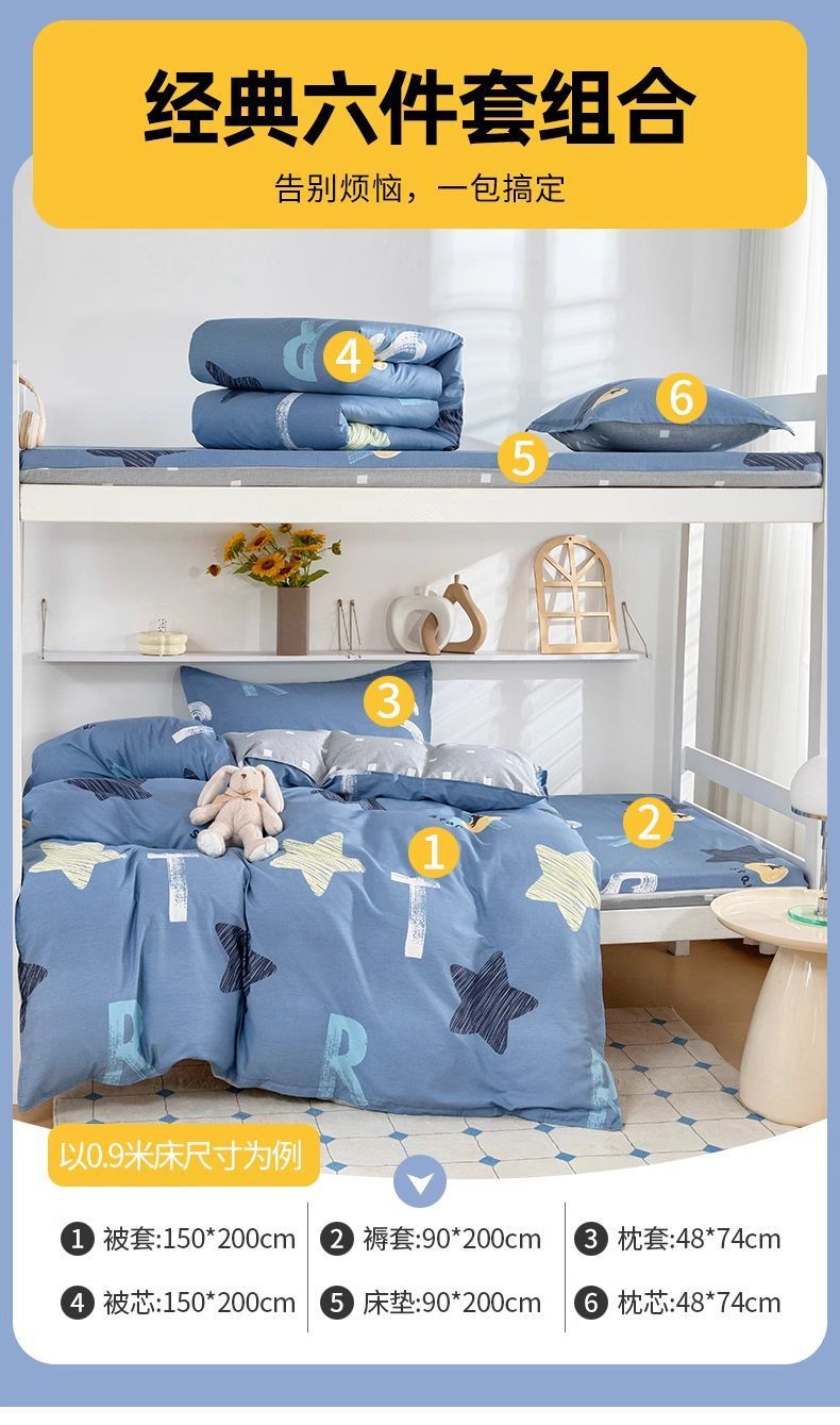 100% algodón dormitorio dormitorio de estudiantes tres piezas set colchón set 90x190 colchón set dormitorio individual seis piezas set