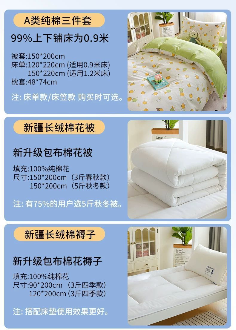 Dormitorio femenino, cama de tres piezas, algodón puro, dormitorio de estudiantes universitarios, sábana individual, funda de edredón, ropa de cama, juego de cuatro piezas, seis