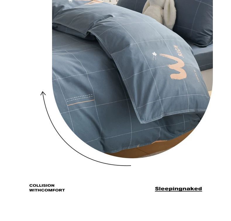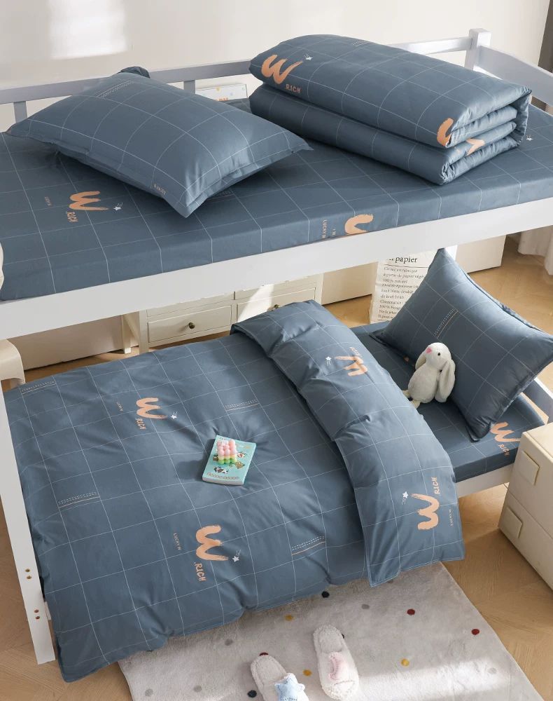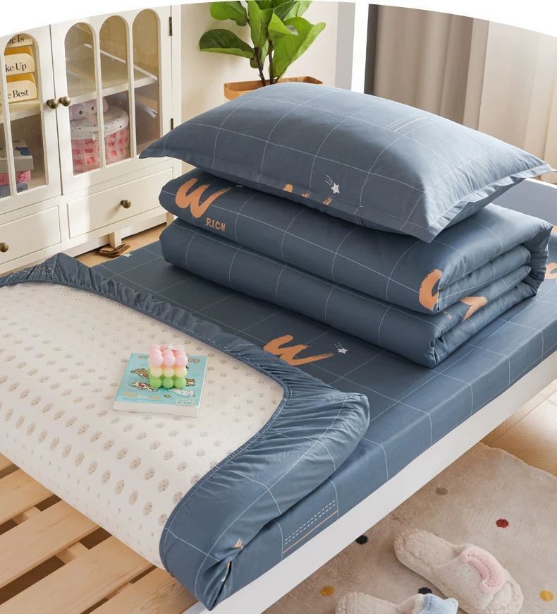 Juego de cama de dormitorio de estudiantes universitarios de tres piezas, sábanas de algodón de algodón, edredón, un juego completo de ropa de cama de seis piezas