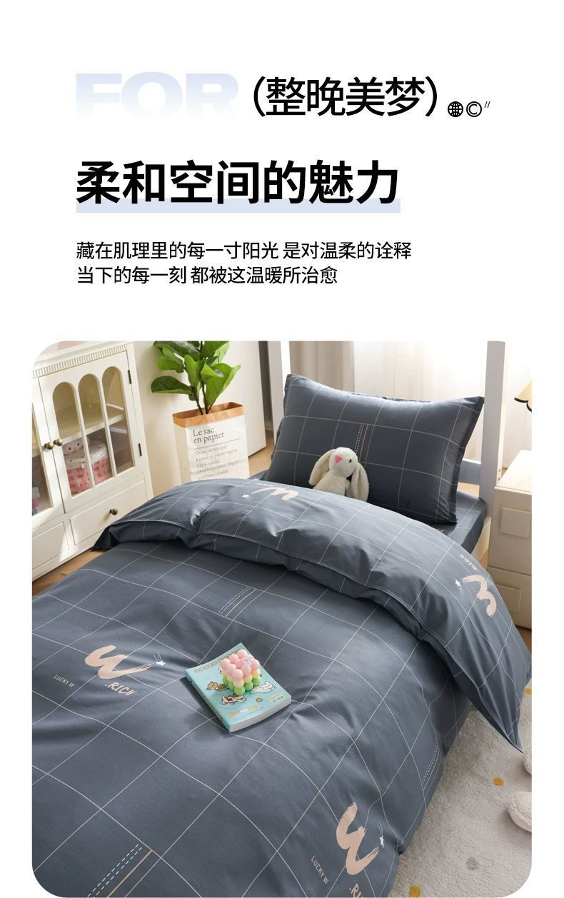 Juego de cama de dormitorio de estudiantes universitarios de tres piezas 100 sábanas de algodón de algodón, edredón, juego completo, juego completo de seis piezas 3