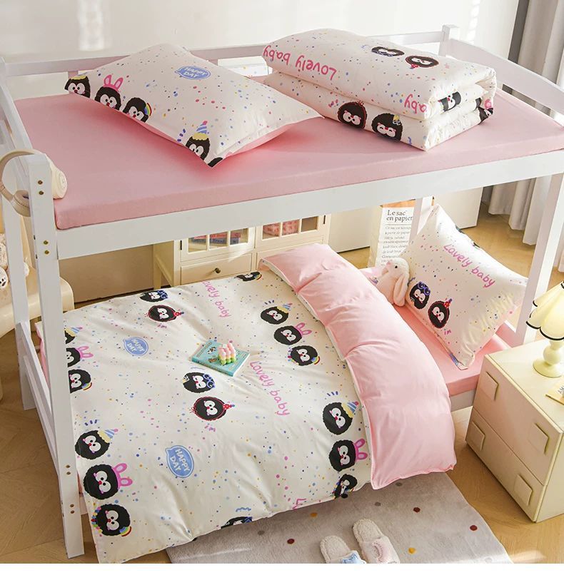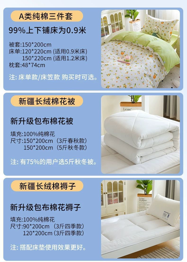 Dormitorio de estudiantes, cama de algodón, edredón de tres piezas, juego completo de sábanas individuales de algodón, juego completo de seis piezas